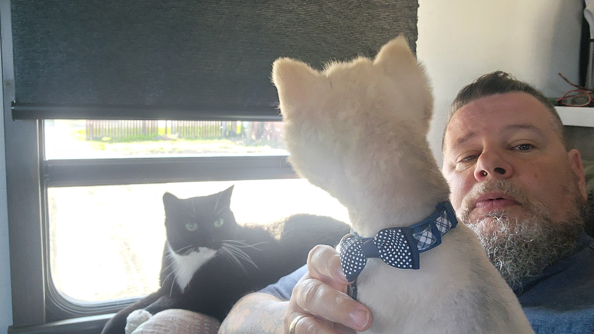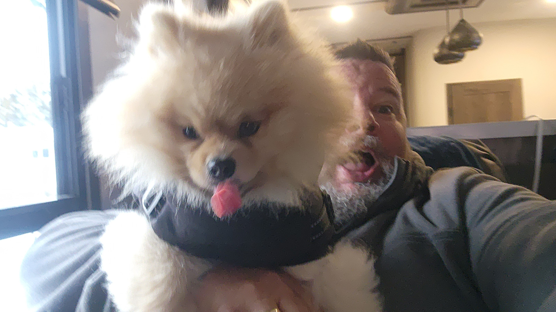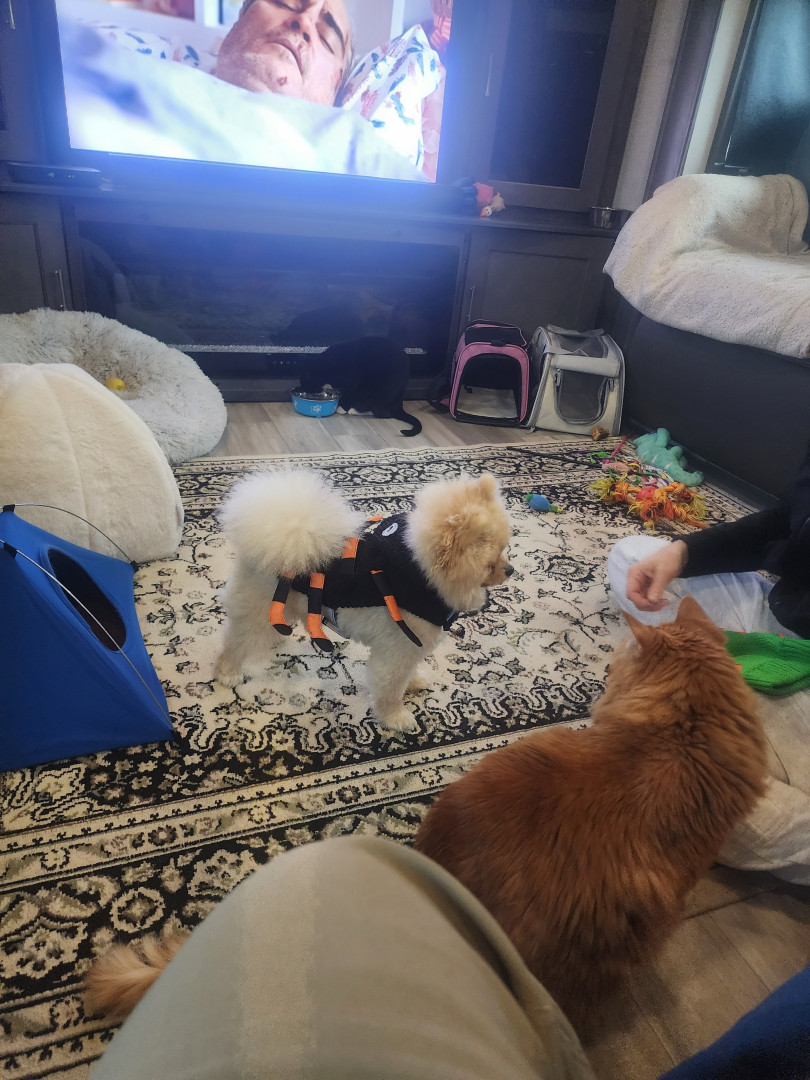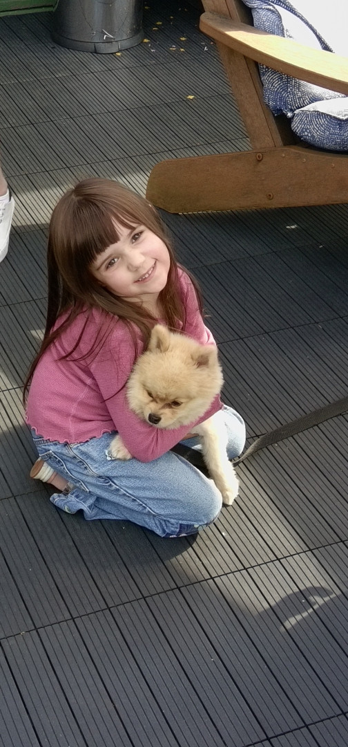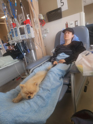 He brings joy to all the cancer patients when my wife goes in for treatment He knows how to read a room and will lie beside my wife when she is doing treatment he's just a ball of joy I really think the pics don't do him justice as everyone gets so happy to see him