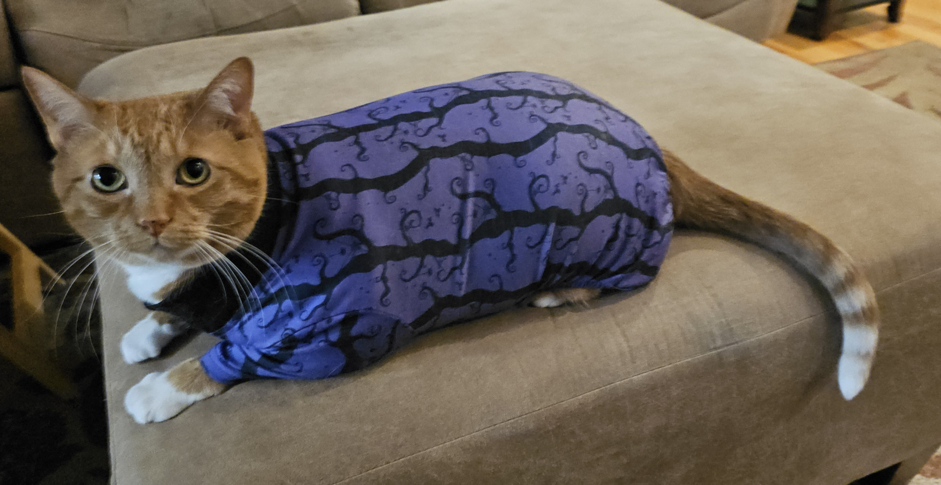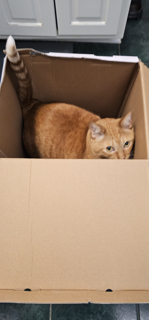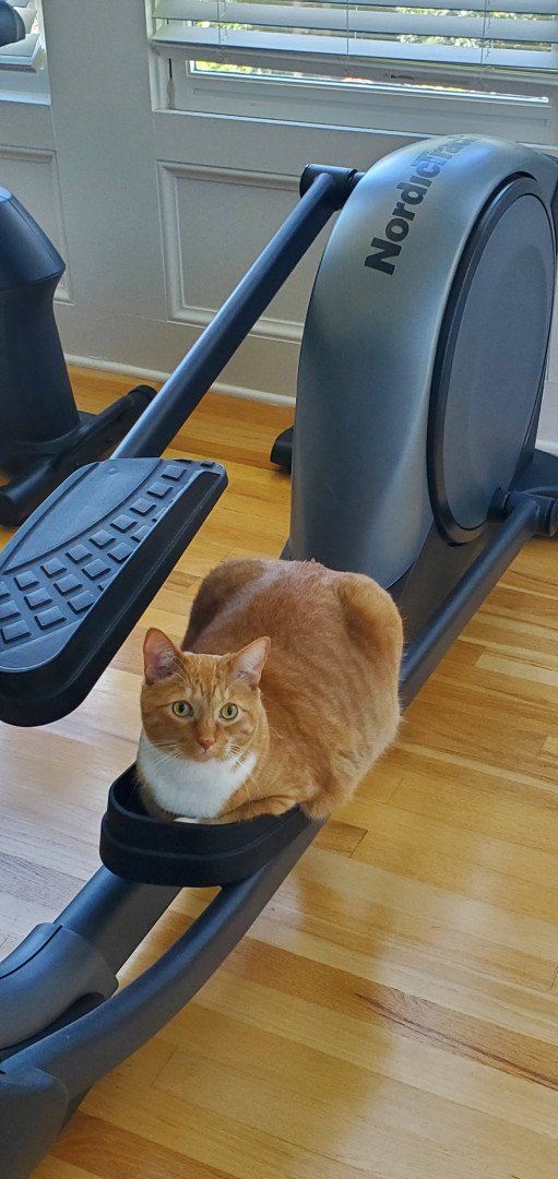 At 10 years old, Templeton plays just like a kitten. Each morning he likes to spar. He gets a puffy tail, side steps, acting big and bad, then rolls over for belly rubs. If he finds a puff ball, it's game on. Then he runs to the back door to relax on the deck. He knows his boundaries even though he has been in trouble for creeping down the deck stairs.