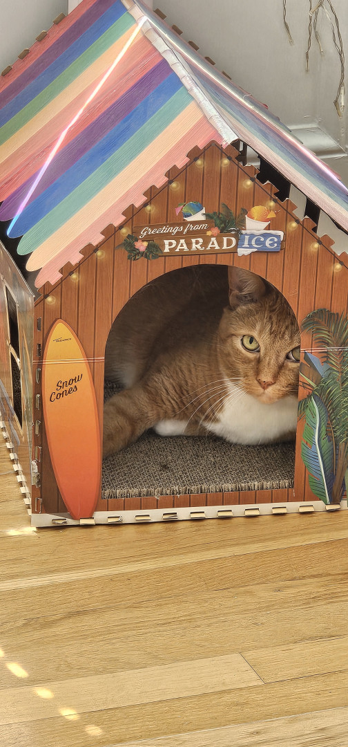 Templeton is a character just like his namesake from Charlotte's Web. He loves to cuddle, be a deck kitty, relax anywhere, & fetches puffs.