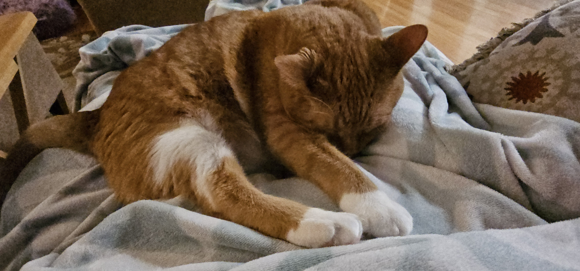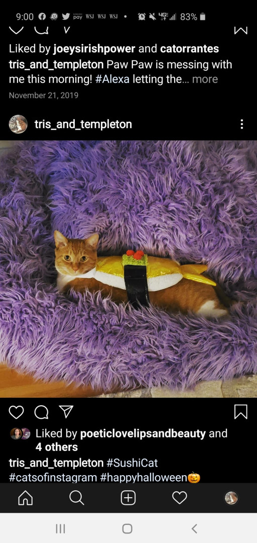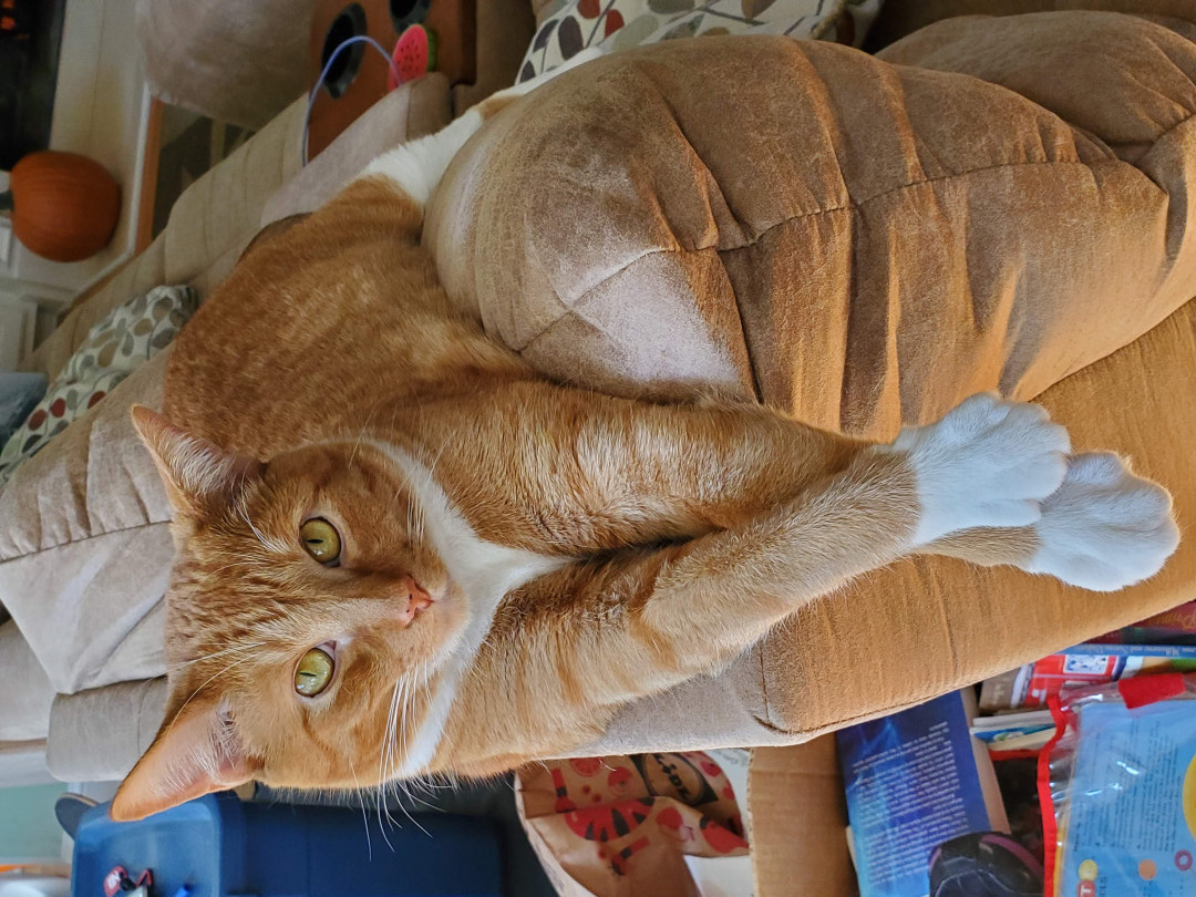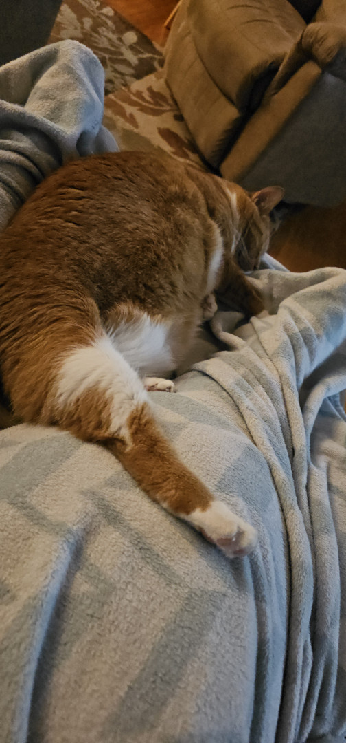 Templeton should be America's favorite cat just like Garfield is! He is a big Ginger kitty that loves his play time, sleepy time, deck time, and snack time! He honestly is this woman's "best friend" and "my buddy".