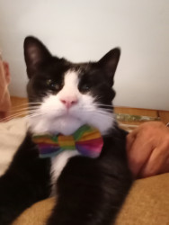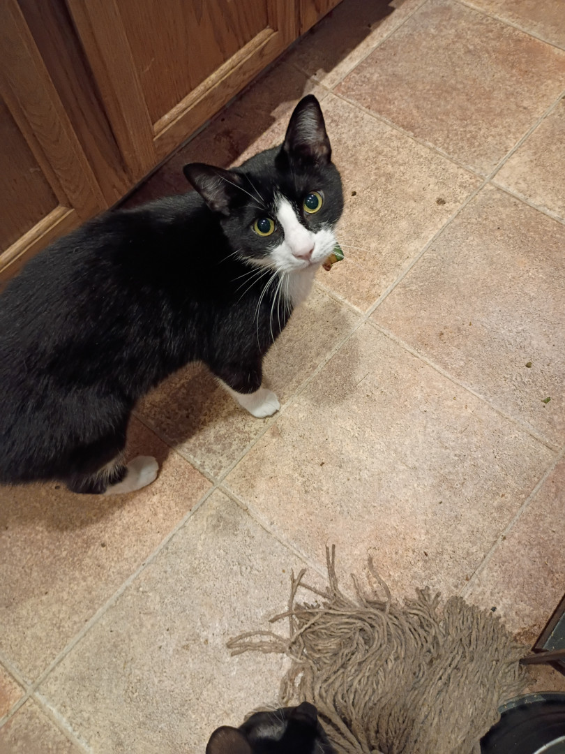 Tennessee Tuxedo is my first very lovable tuxedo cat. He was a rescue from a drug bust. He's a big boy. A mother hen to his siblings.