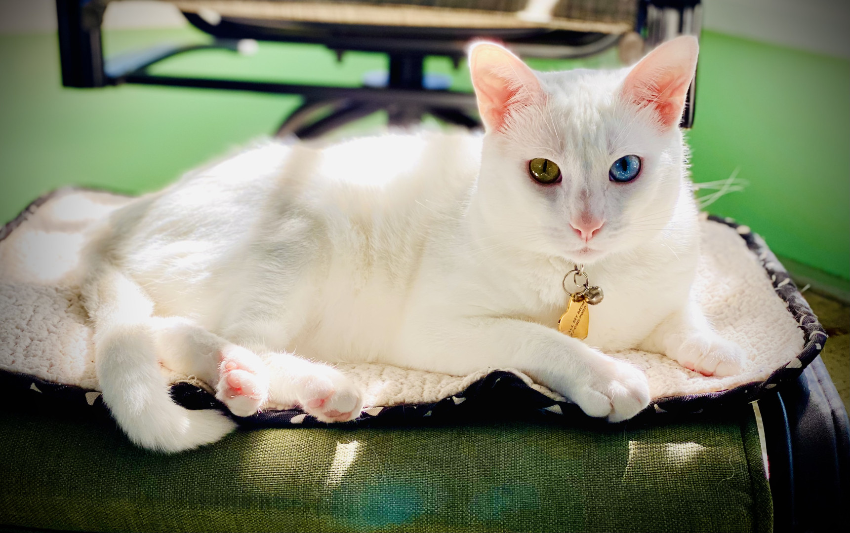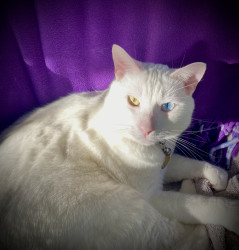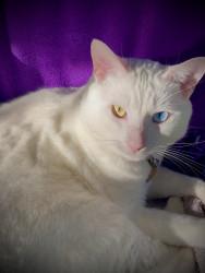 He is my support animal, he is deaf. His name is derived from ( cat different eye color/Heterochromia-iridium rare 1/1000 cats have this.