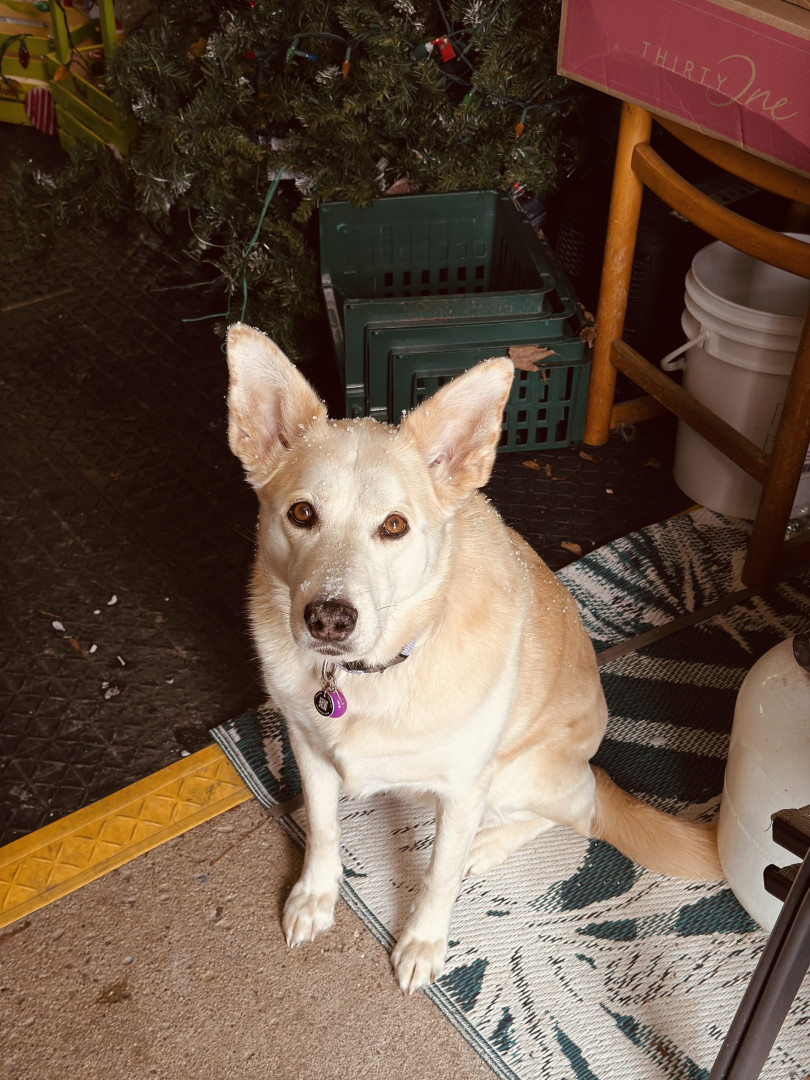 Tesla is a white German shepherd cross. Is 8 years old. Sweetest fur baby. Love having her picture taken