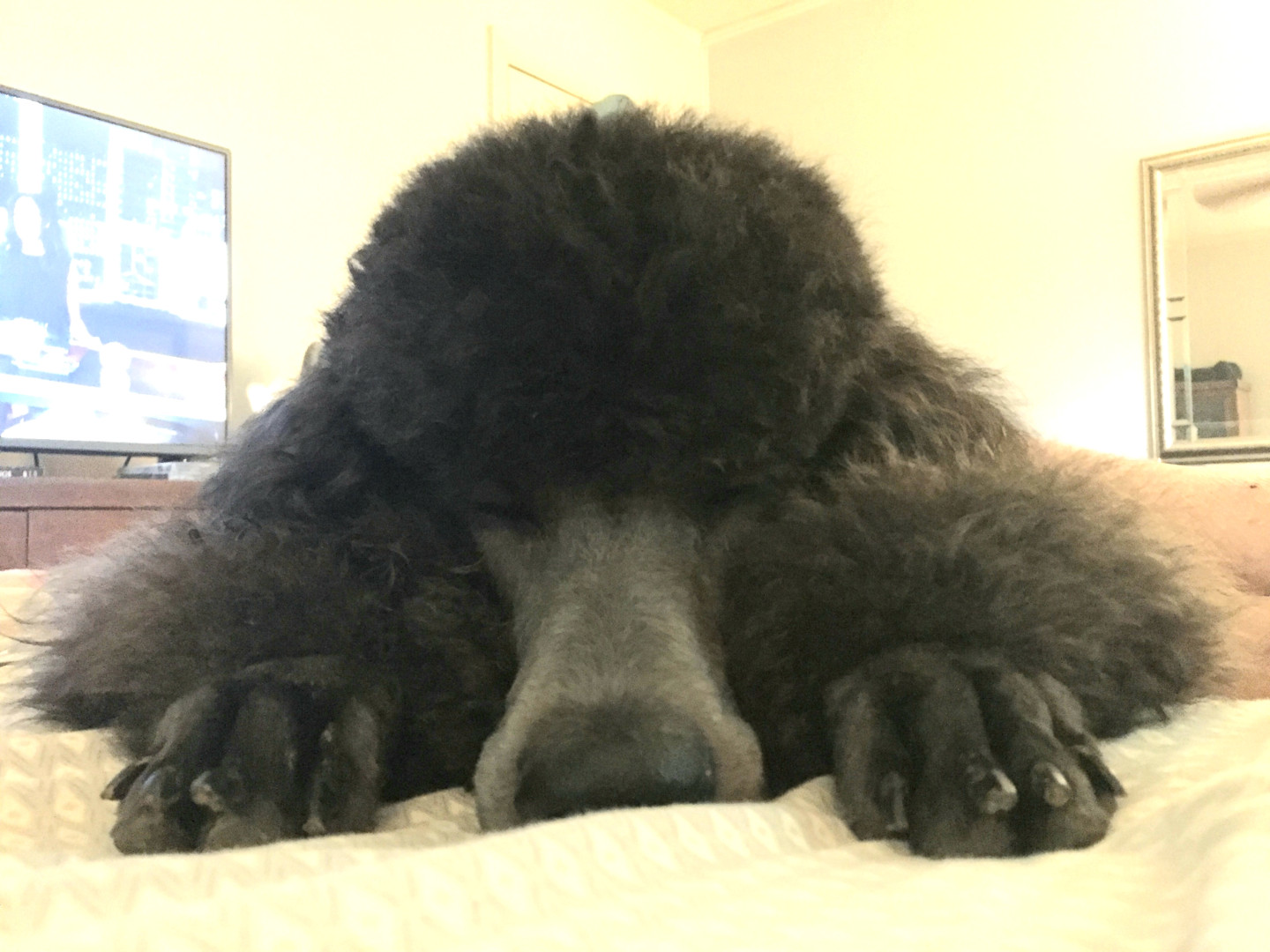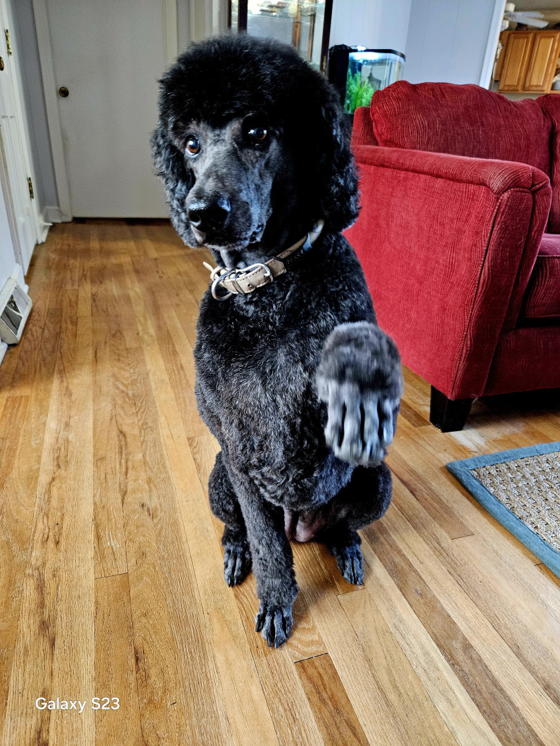 Tessa is a 60 pound Standard Poodle born in 2017. She loves to be lazy but will spring into action whenever food makes an appearence.