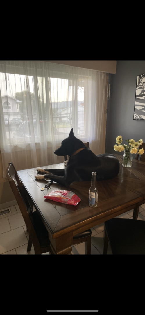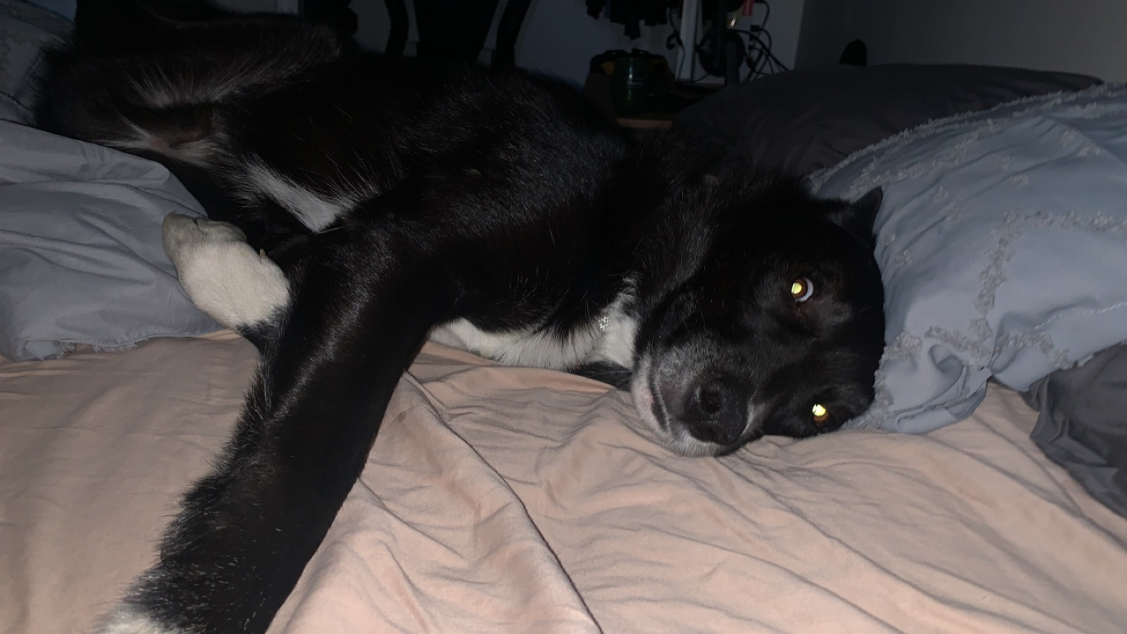 Soft hearted Siberian husky/ Border collie protector with golden retriever energy trapped in a cool, outdoorsy body. Currently 5yrs old🖤🐾