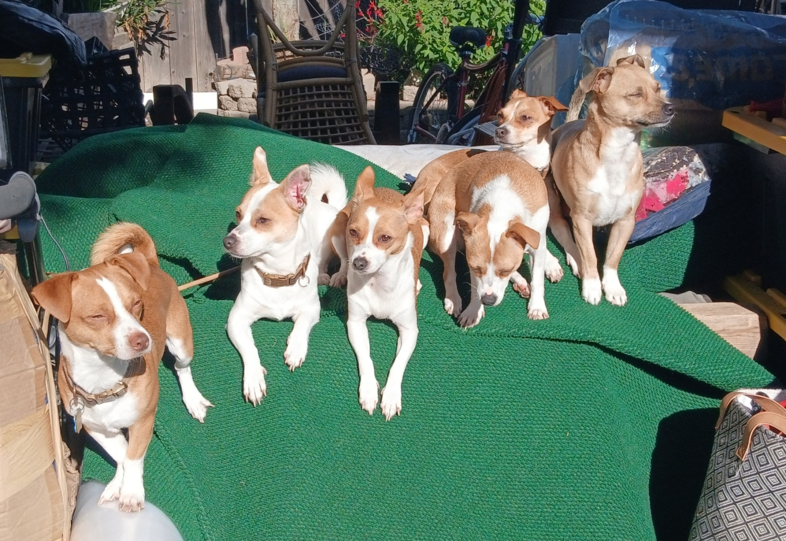 They come from of rescued/saved parents. Two were actually born on top of my head while i was sleeping. Mom and dad are still with us as well, could not get in picture of pack