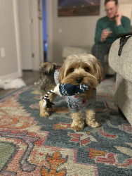 Learn MoreHis favorite toy is his Lamb Chop stuffy and he's quite partial to little cat toys. His favorite treat is a frozen yogurt dog treat made by The Bear and Rat in Colorado. He also loves bully sticks.