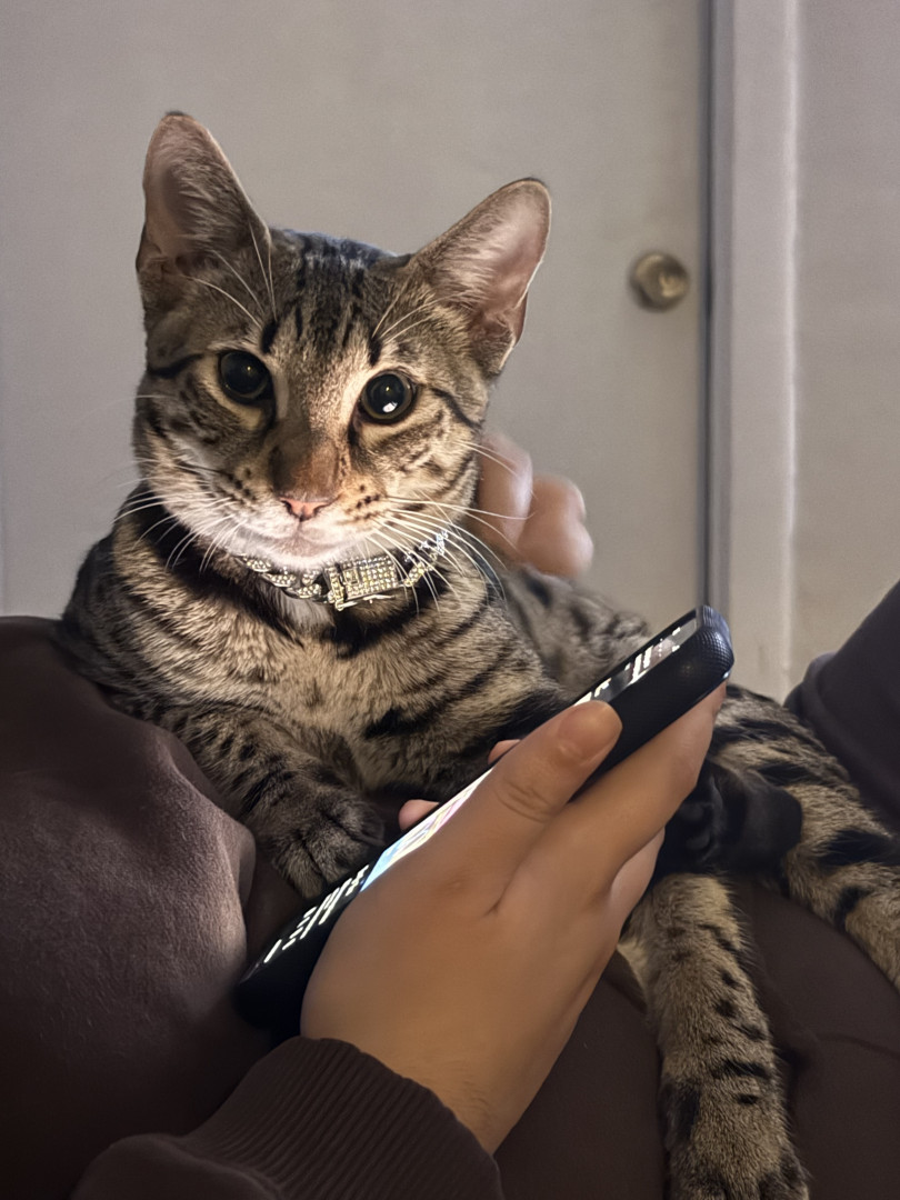 Thor’s most unique quality is probably that he’s quite literally like the avenger , he loves doing tricks, fighting his demons , and making sure he gets his cardio in !!! He’s very brave and everyday he is full of surprises with his awesome meowing, his generous love and gigantic green eyes ๐