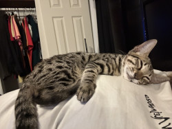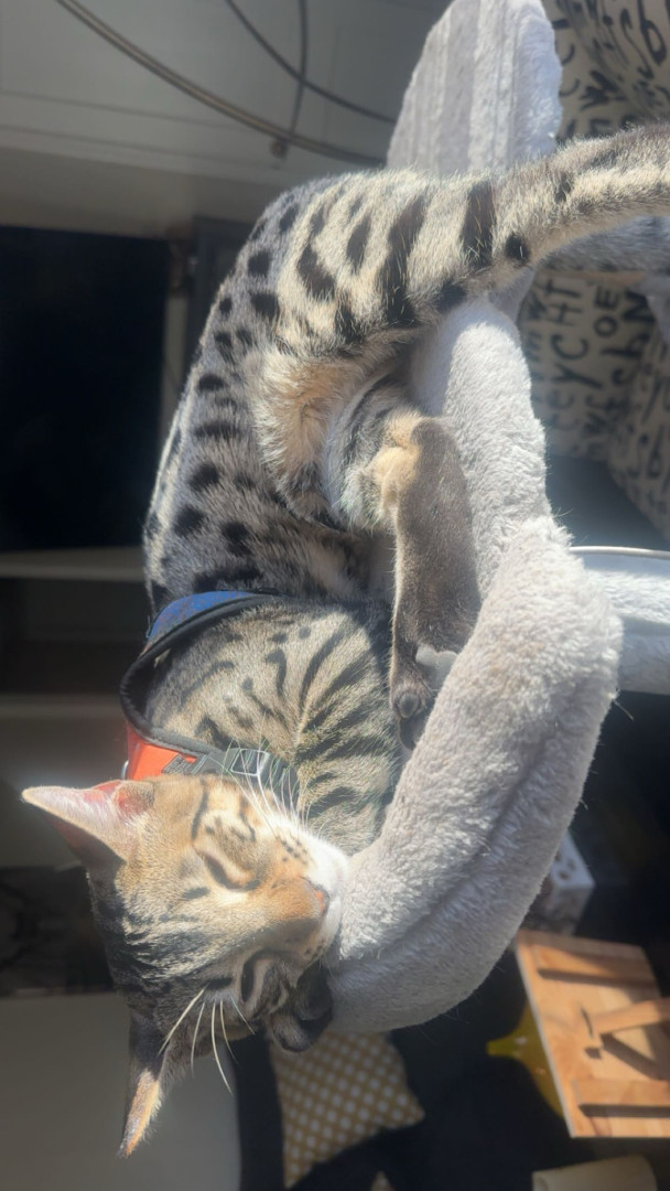 Thor is named after the avenger ๐ He’s extremely athletic and loves cuddles , he loves his play time and lurking on his tree.