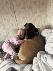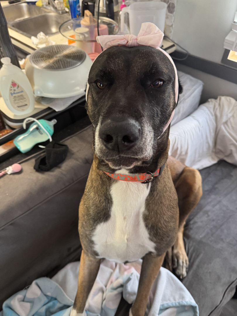 I believe my dog should be America’s favourite as he had a rough start to life. He was majorly abused and neglected. I got him at five months old and he was 15 pounds. He is now four years old and such a loving happy and healthy boy. He has been a great fur-brother since day one with our daughter and we are expecting another daughter in January or February and I know he’ll be such a great fur-brother to her too. He is also such a big suck.