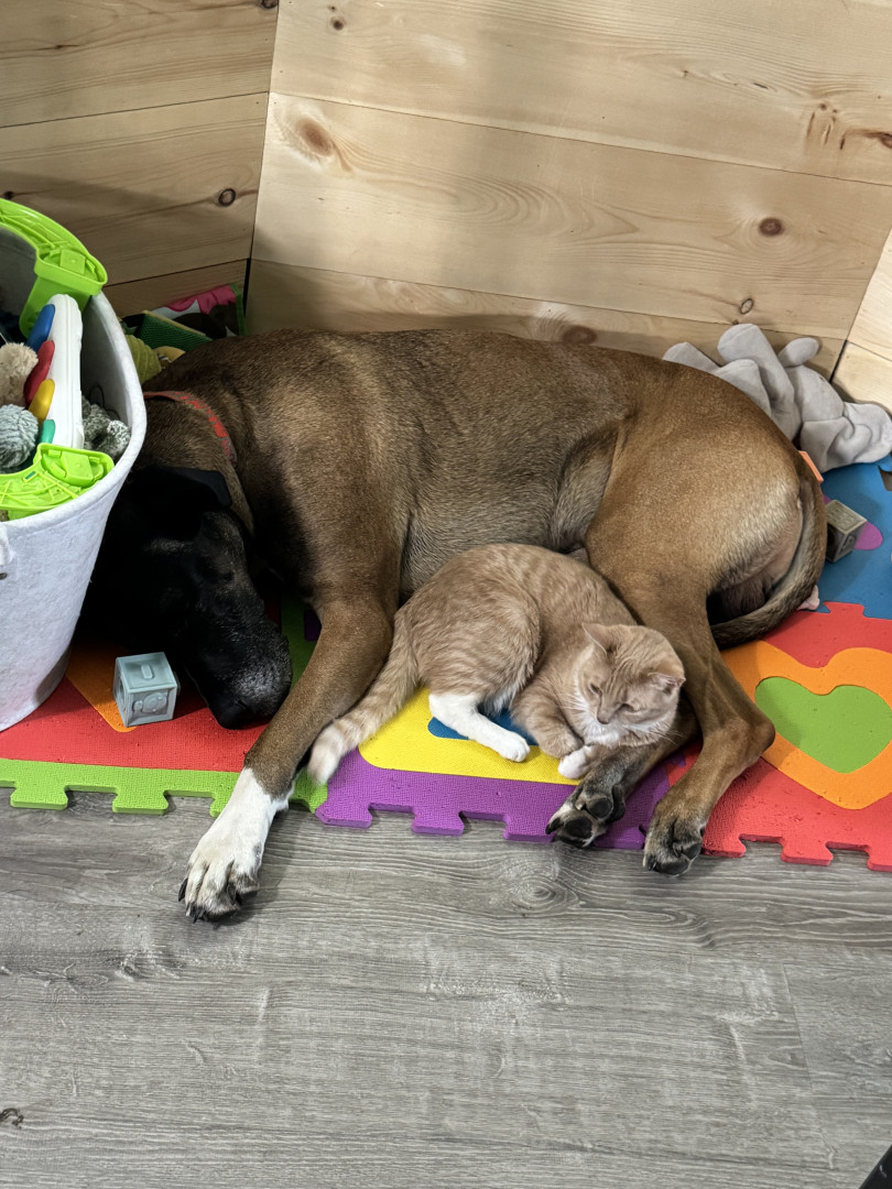 Thor is a big cuddle bug and the best big fur-brother a kid could ask for. He loves his human and fur siblings and is so affectionate