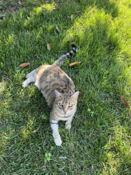She is an outdoor cat and she goes out during the day and comes back when we whistle.