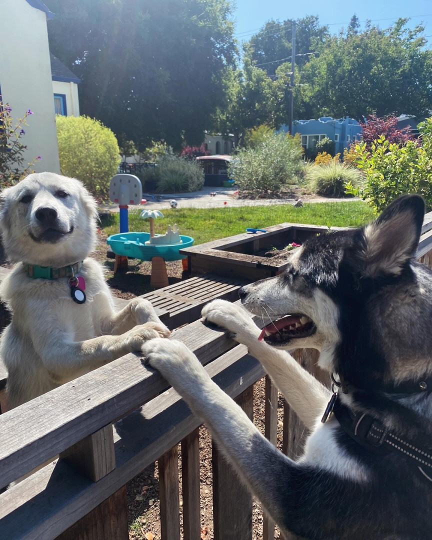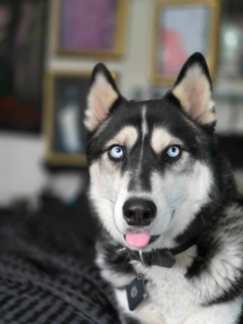 It’s hard to pick just one! His ice blue eyes and his deep baritone voice. He always says “hi” to everyone we pass on the street with his signature, deep “woooooo”. Or maybe it’s the zoomies he gets on the park lawns! He’s a joyful boy!