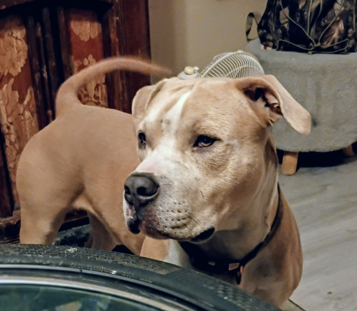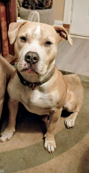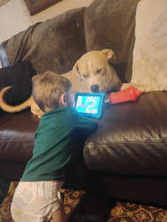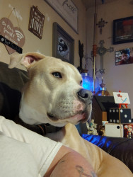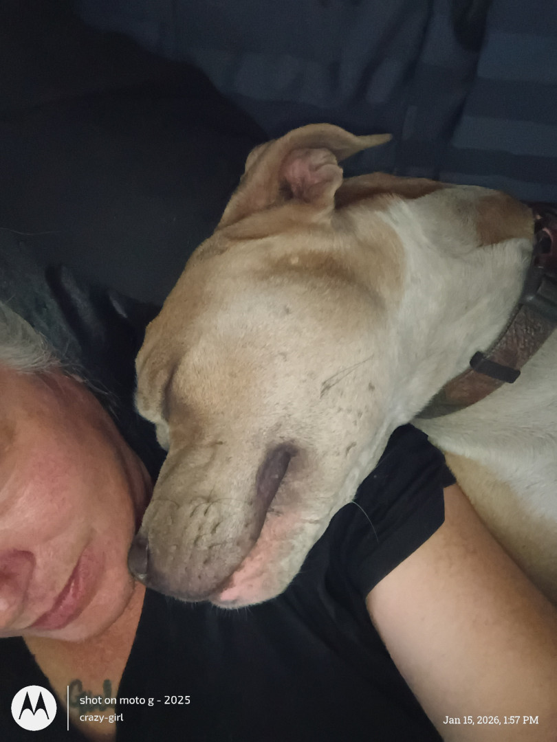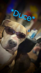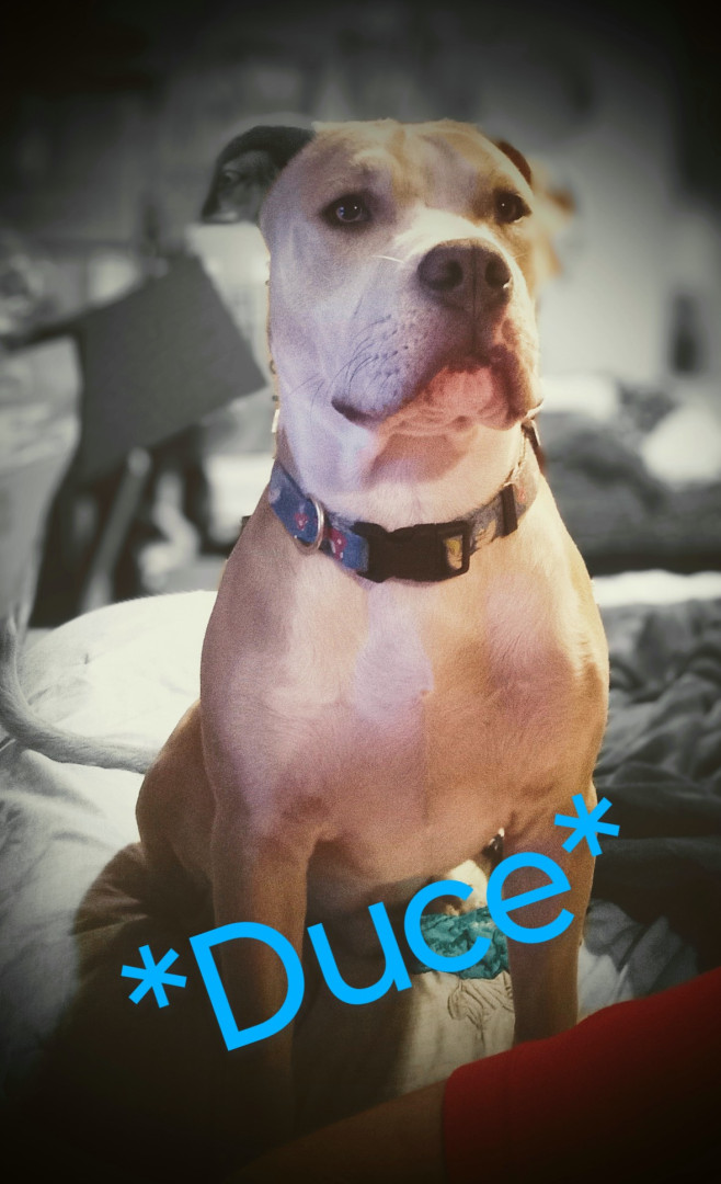 Duce is a 2y pitbull who thinks he's human. Love's car rides and to be in your lap.
