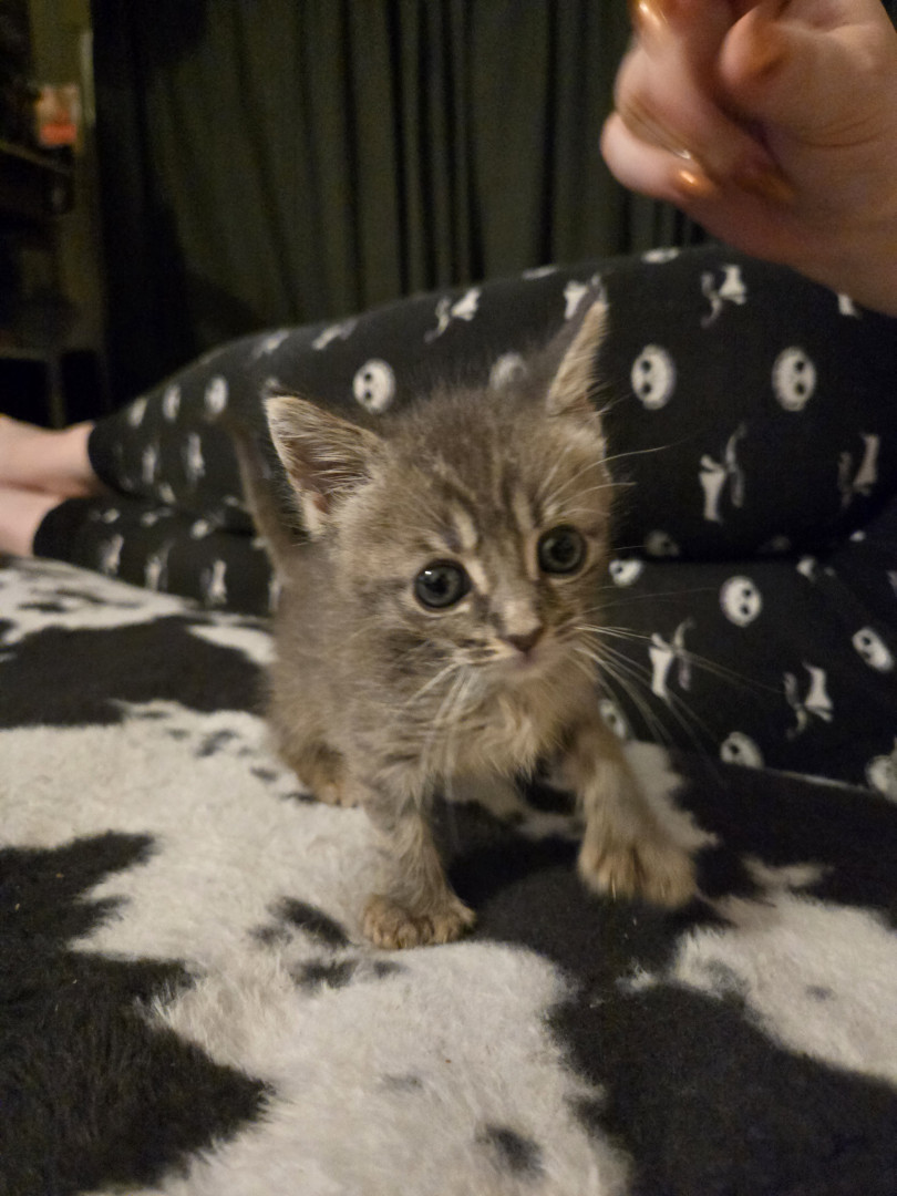 She is loving cuddly friendly little cat. Her stripes make her beautiful.