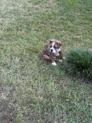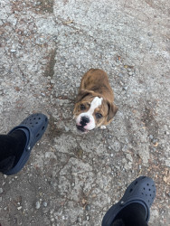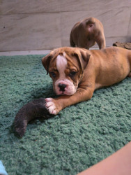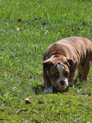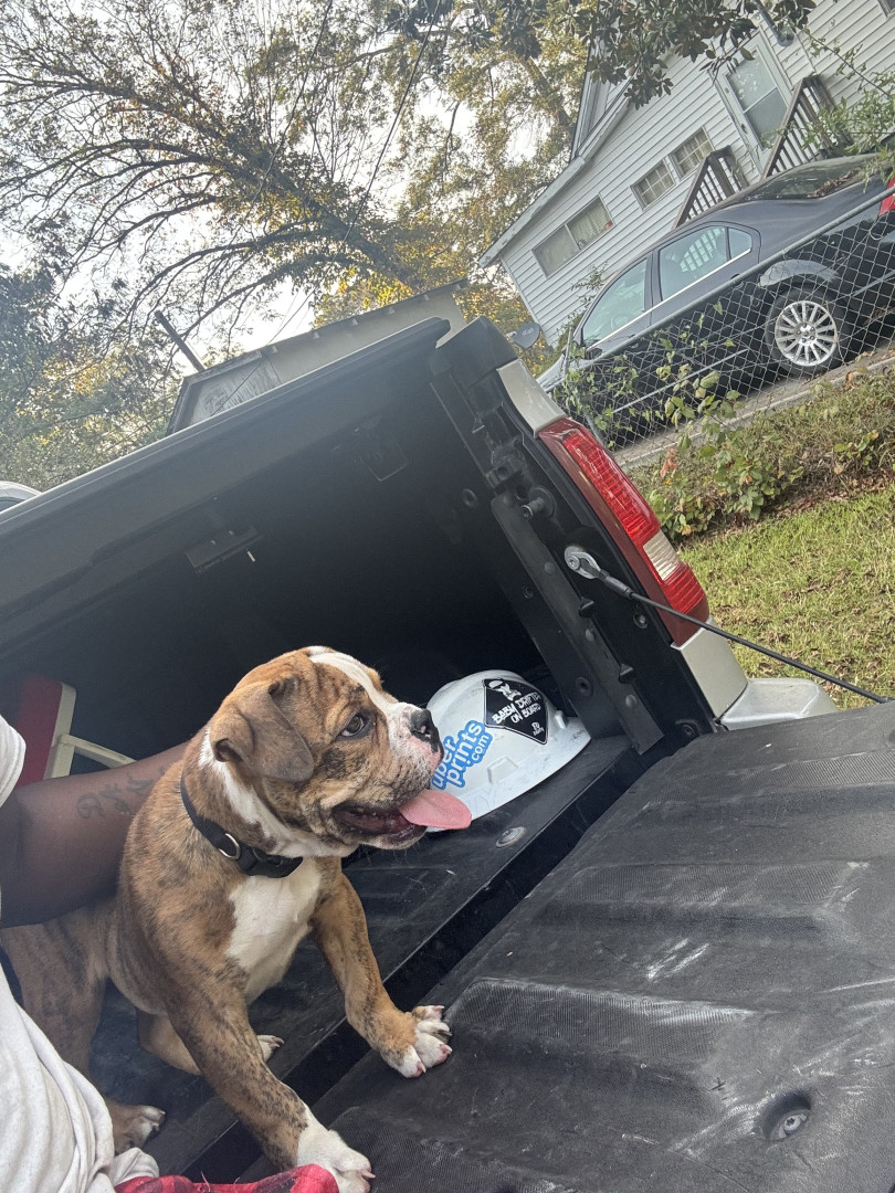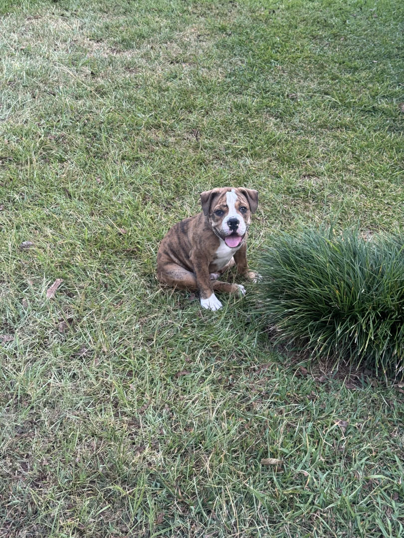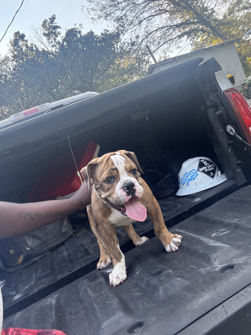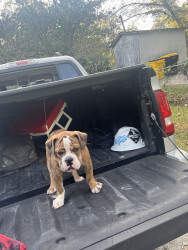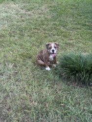 Tiger is and olde English bulldog and very sweet brindle color dog