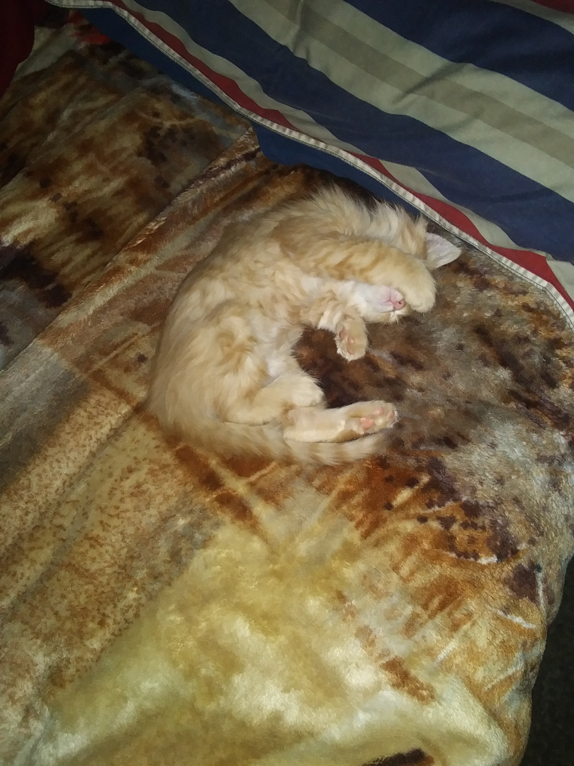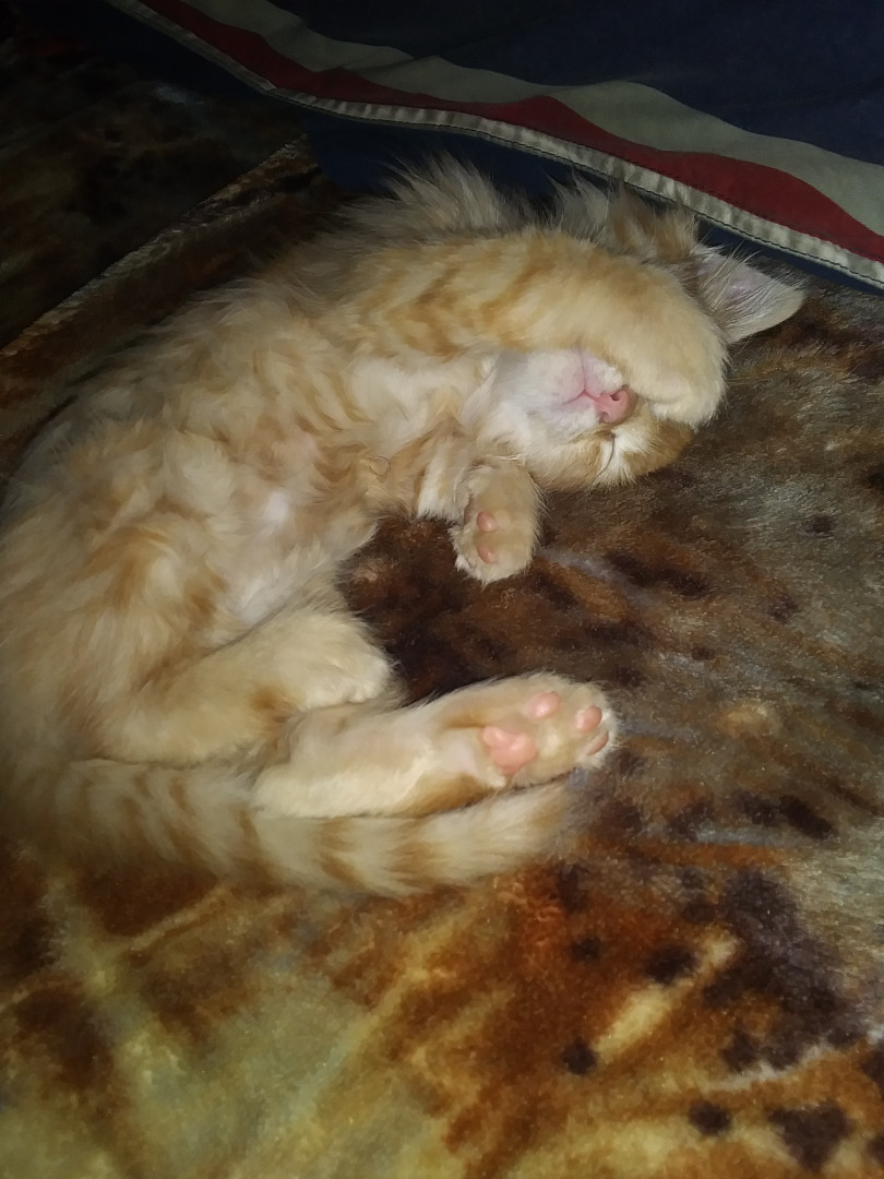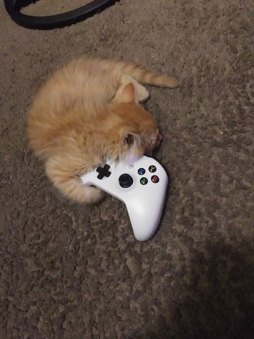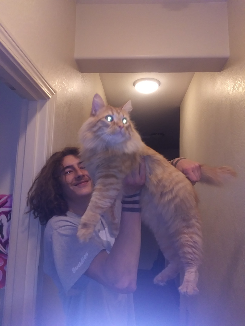 Tigger is a huge ginger cat that my son found abandoned at a park shortly after he was born. He was tiny and weak at the time. Not anymore!