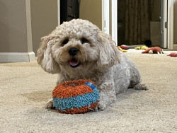 Learn MoreTiki’s favorite toy is a green rubber squeaky ball. Her favorite treat is duck jerky, or Shameless Pet Blueberry Treasure.