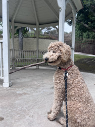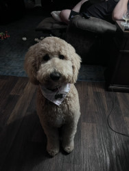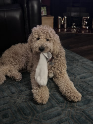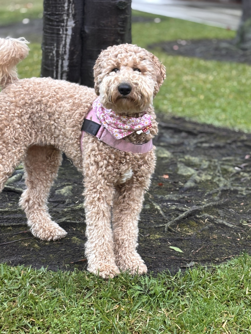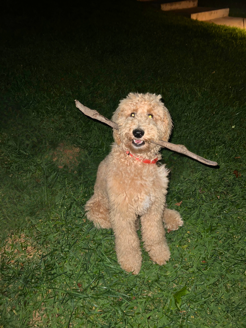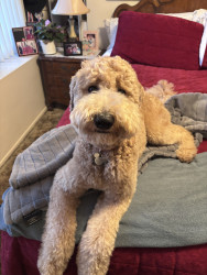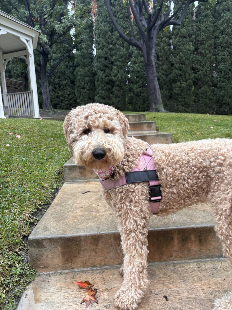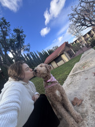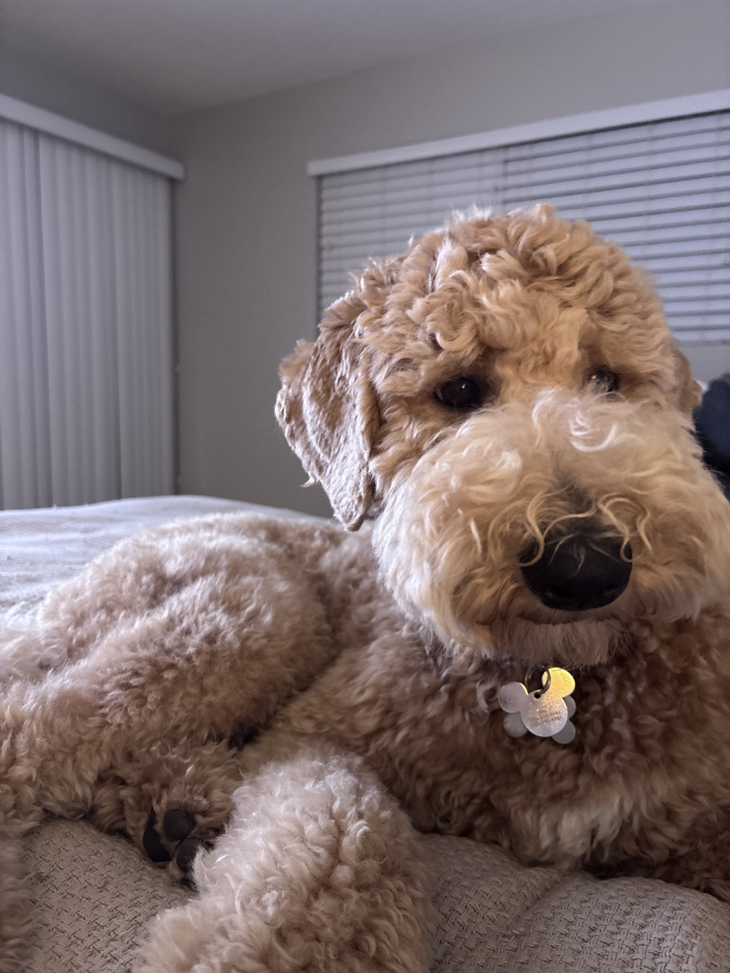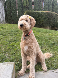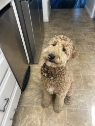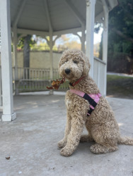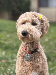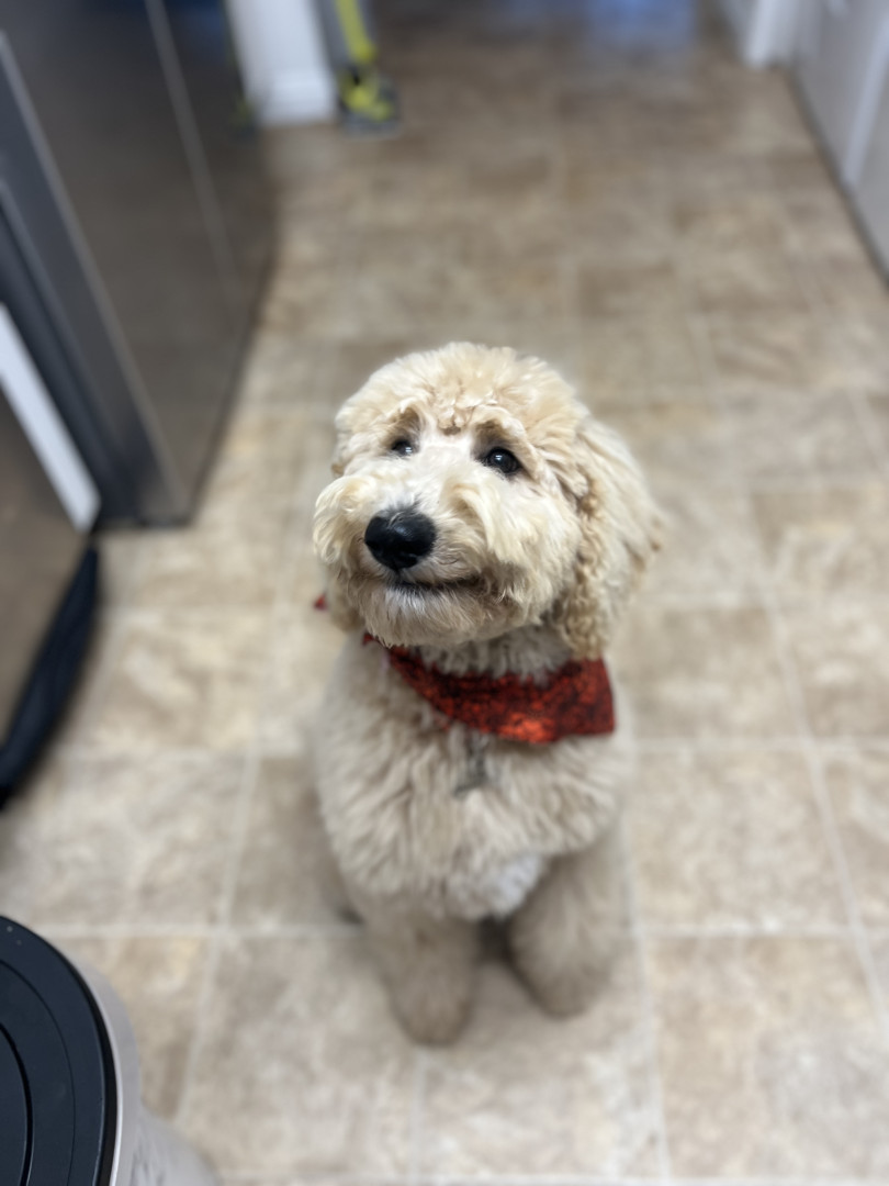 She is a super sweet one year old goldendoodle. She loves giving cuddles and will do anything for a treat!