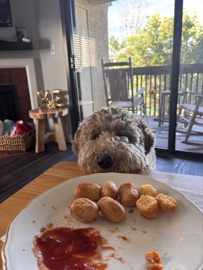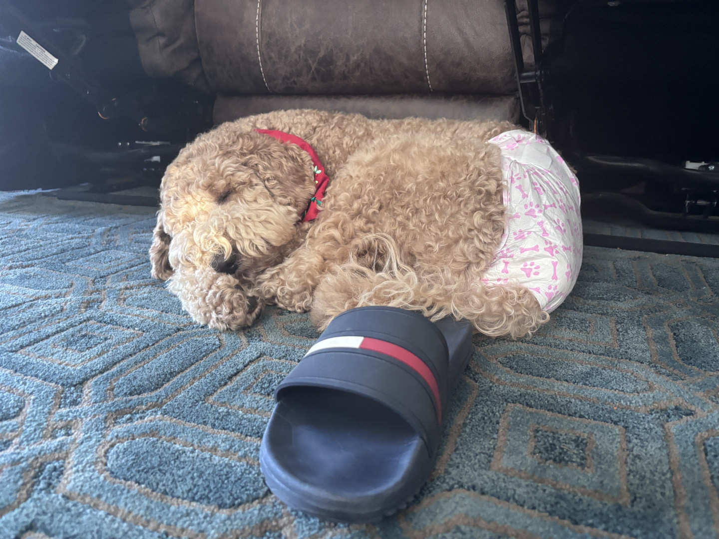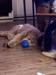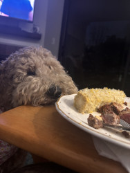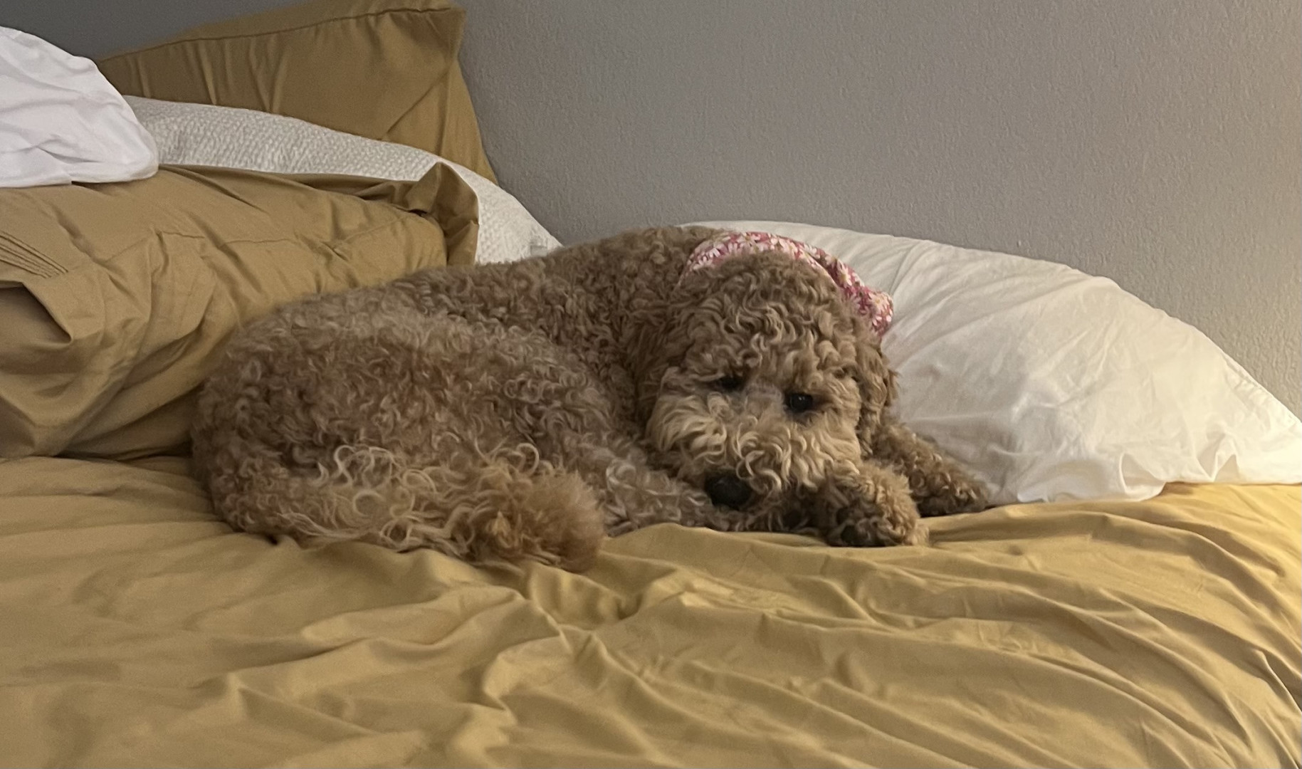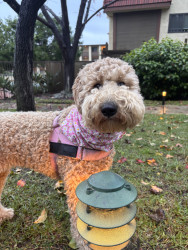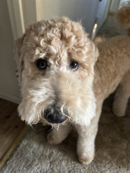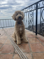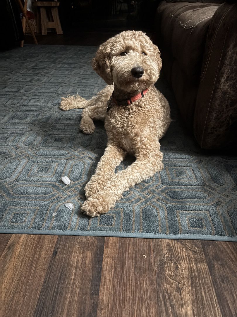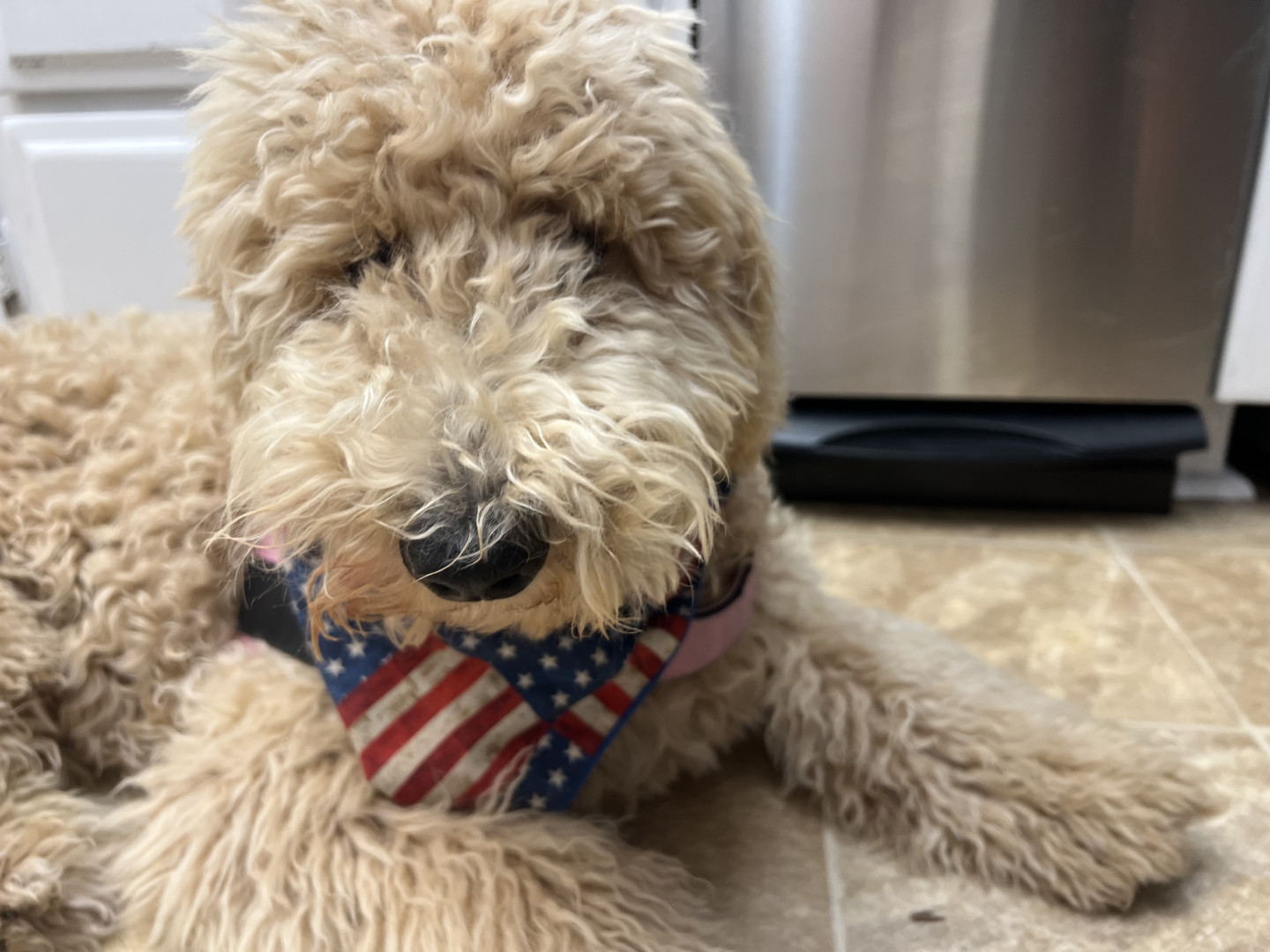 She is a super sweet one year old goldendoodle. She loves giving cuddles and will do anything for a treat!
