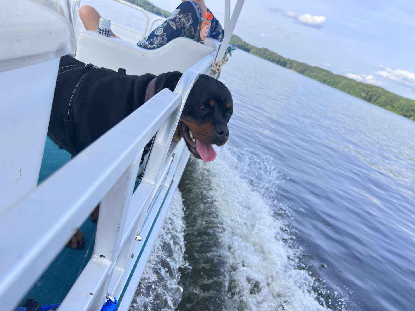 Tilly is 95 lbs. of love! She has to be with her family at all times. She loves to swim.
