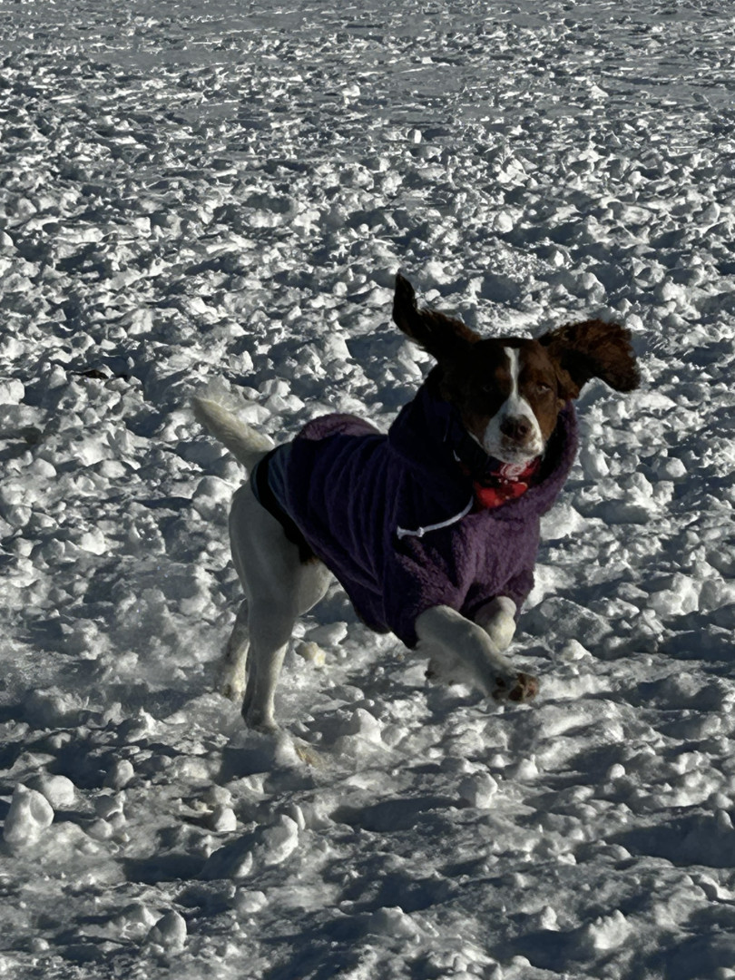 English Spring Spaniel, Till is a huge fan of the Green Bay Packers, chasing squirrels and birds. She loves a good nap and lots of treats.
