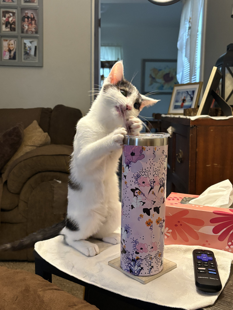 She was abandoned on my doorstep. So tiny, and soaking wet. Sickly. Now she’s growing and full of playful energy. I have 2 other cats. But Tilly has captured my heart.