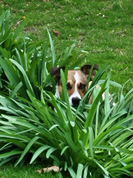 With the background he had, he still loves all people and dogs. While on a walk, he will lie down whulile people/ dogs walk by as if to let them know he is safe to approach. But be careful, he is still a jumper.