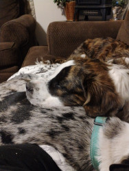 Timber is the best gentle giant around! He is playful but yet so cuddly. AMD he is a great foot warmer!