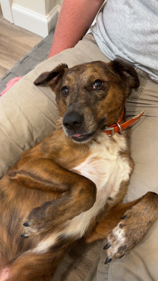 Timber is an energetic catahoula curr/plot mix that is always on the move! He loves to play outside, get treats, and protect his family.