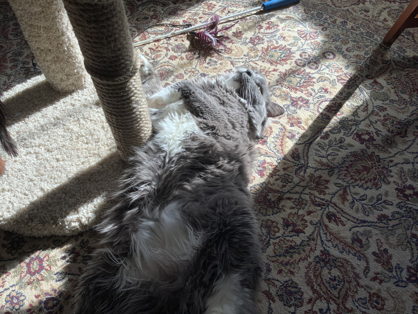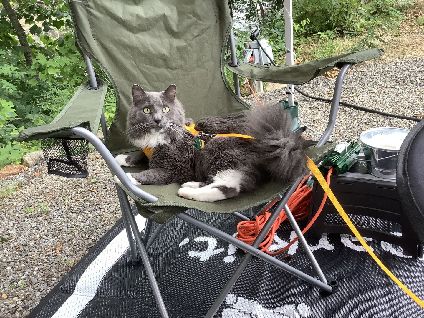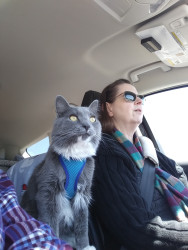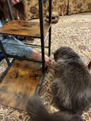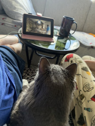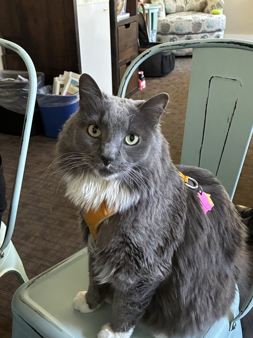 Wants to be petted while he eats. Or loving to travel with us in our RV.