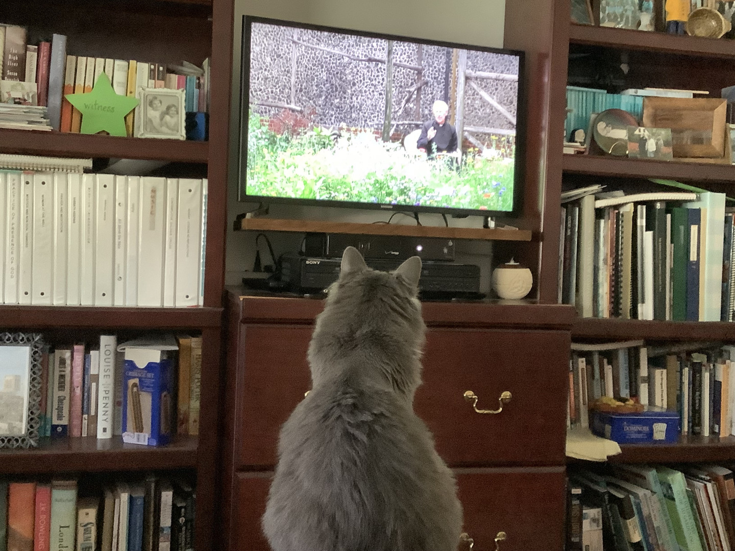 Timothy is a veteran traveler. He has been in or through 21 states as Sister Julian and I travel in our RV. He also loves to watch TV.