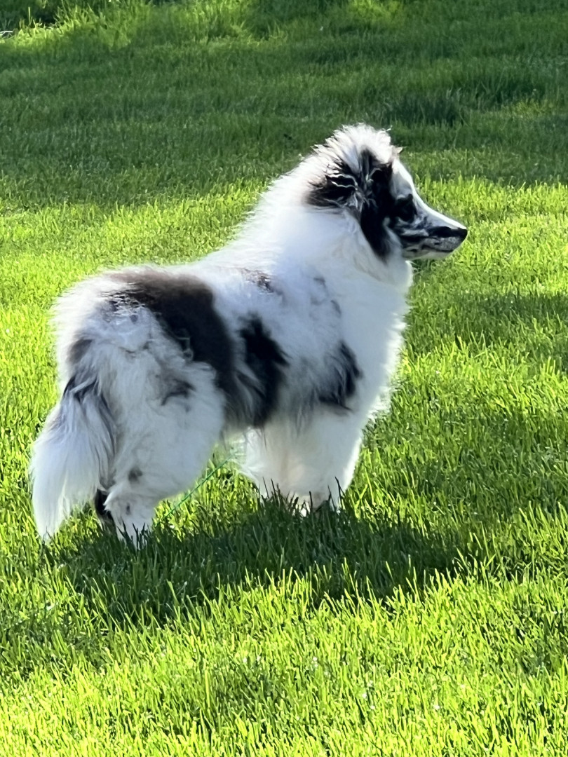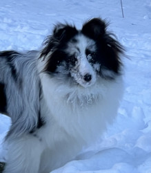 She has very unique coloring. She is a bi blue sheltie. You see a lot of sables tri’s and Merle’s but not too many bi blues. People are always asking what breed of dog she is because they have never seen one like her. Everyone is always saying how beautiful she is. I have owned a lot of dogs but Tina is unique. She has beauty and brains,