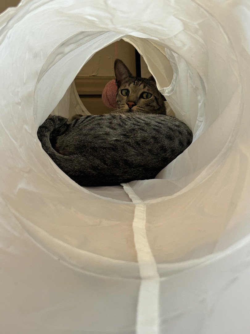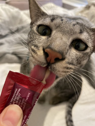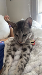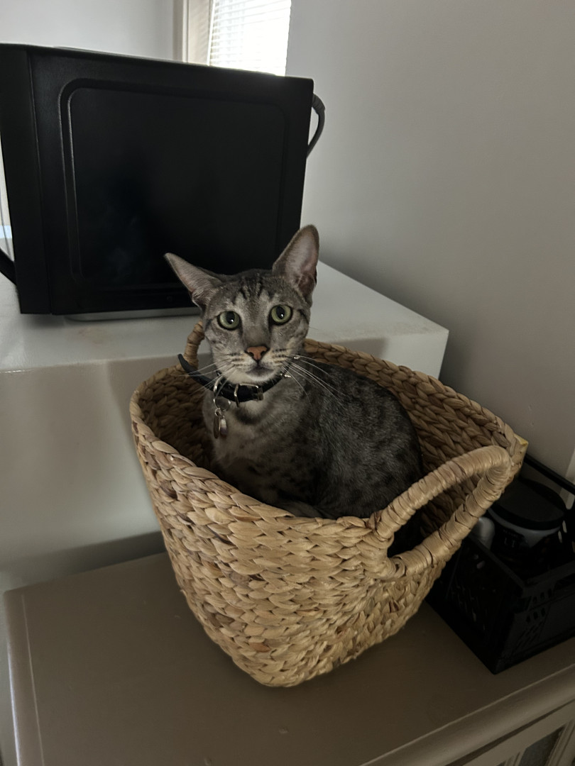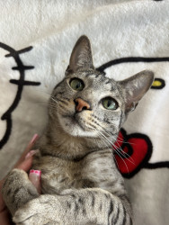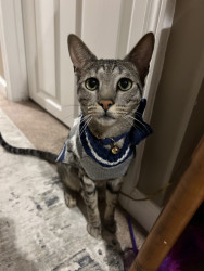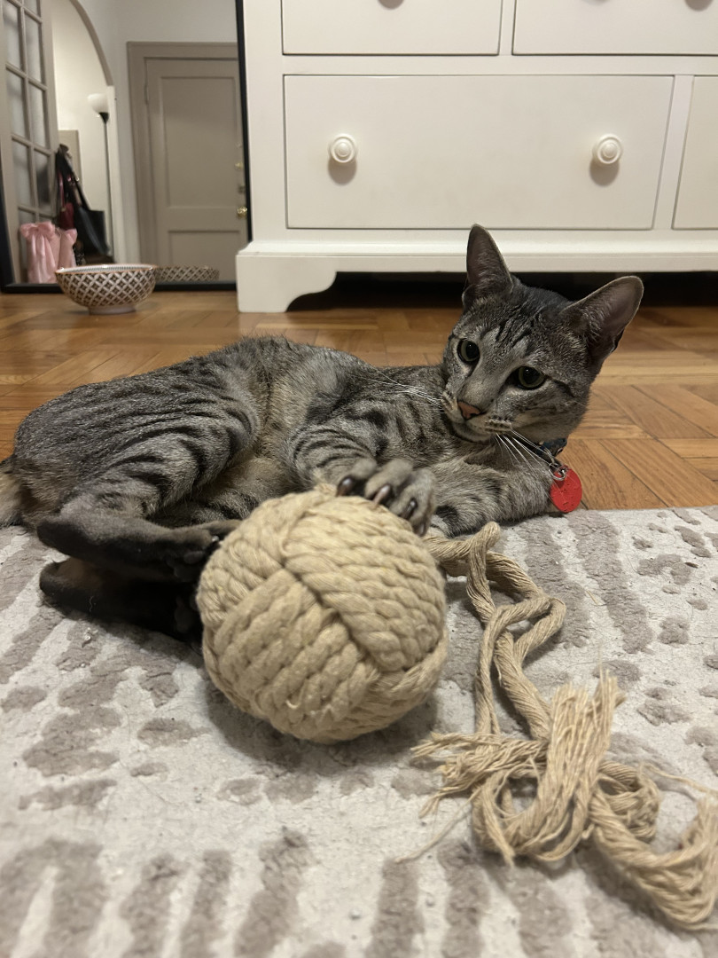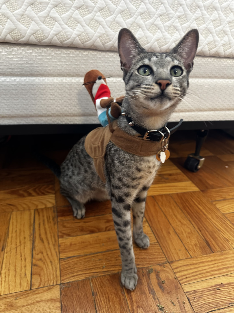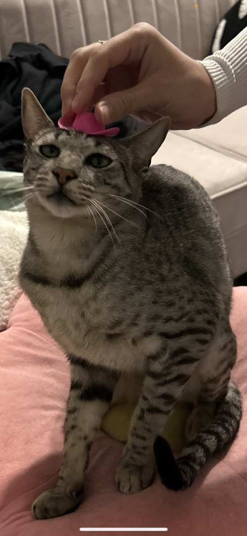 Tini should be America’s favorite kitty because he LOVES to be the center of attention and can’t get enough of it! He loves meeting new people and has TONS of girlfriends 😏 he loves to climb on mommy’s shoulder and hang out with her while she does things around the house!