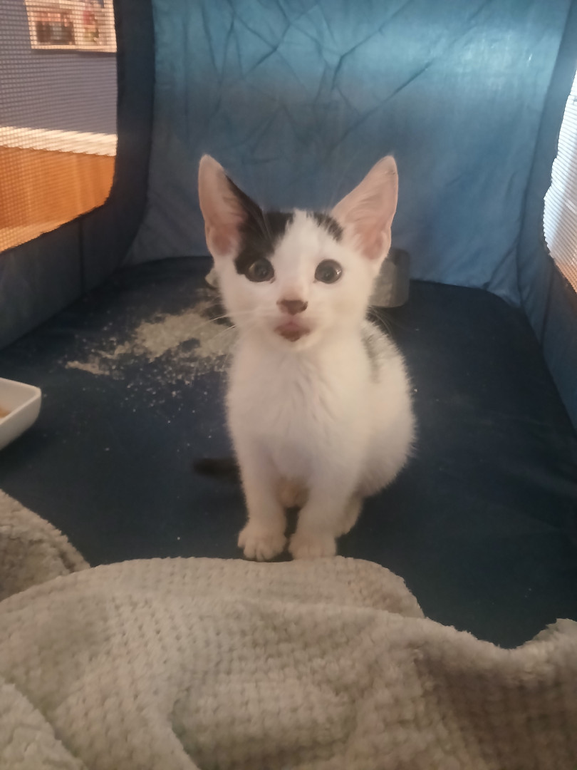 Tink is a high energy kitten. (15 weeks) He was found hidden in a golf cart. Has a huge personality energy lovable fearless lovable cuddlebu