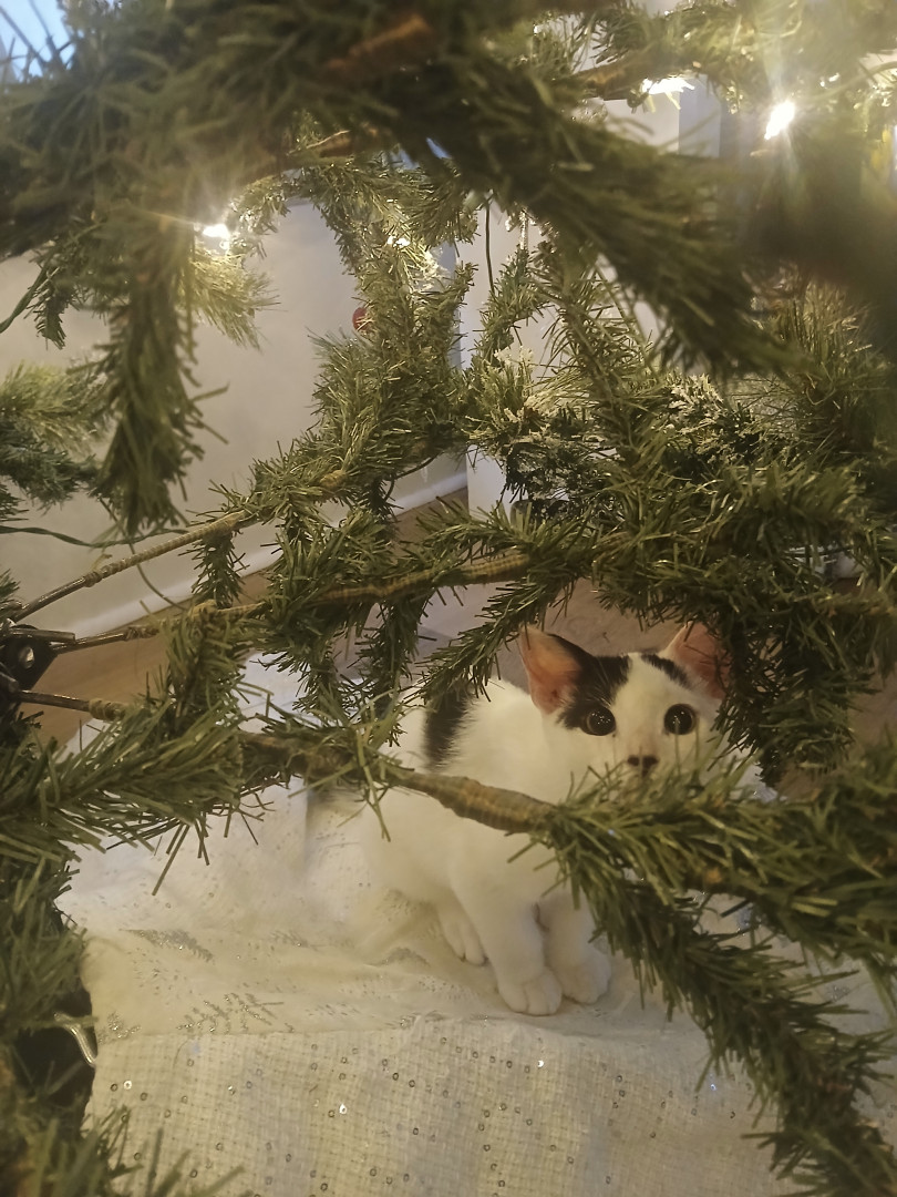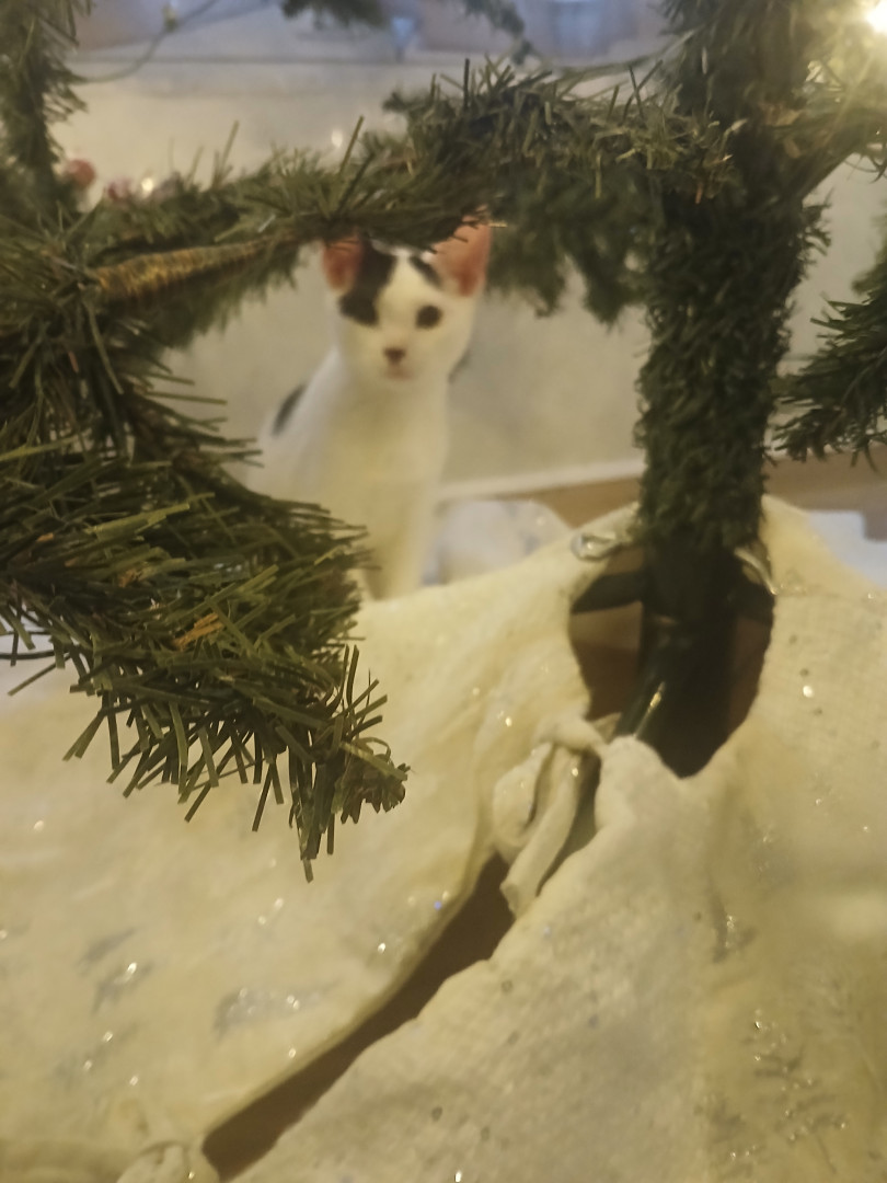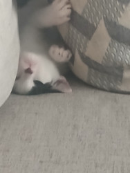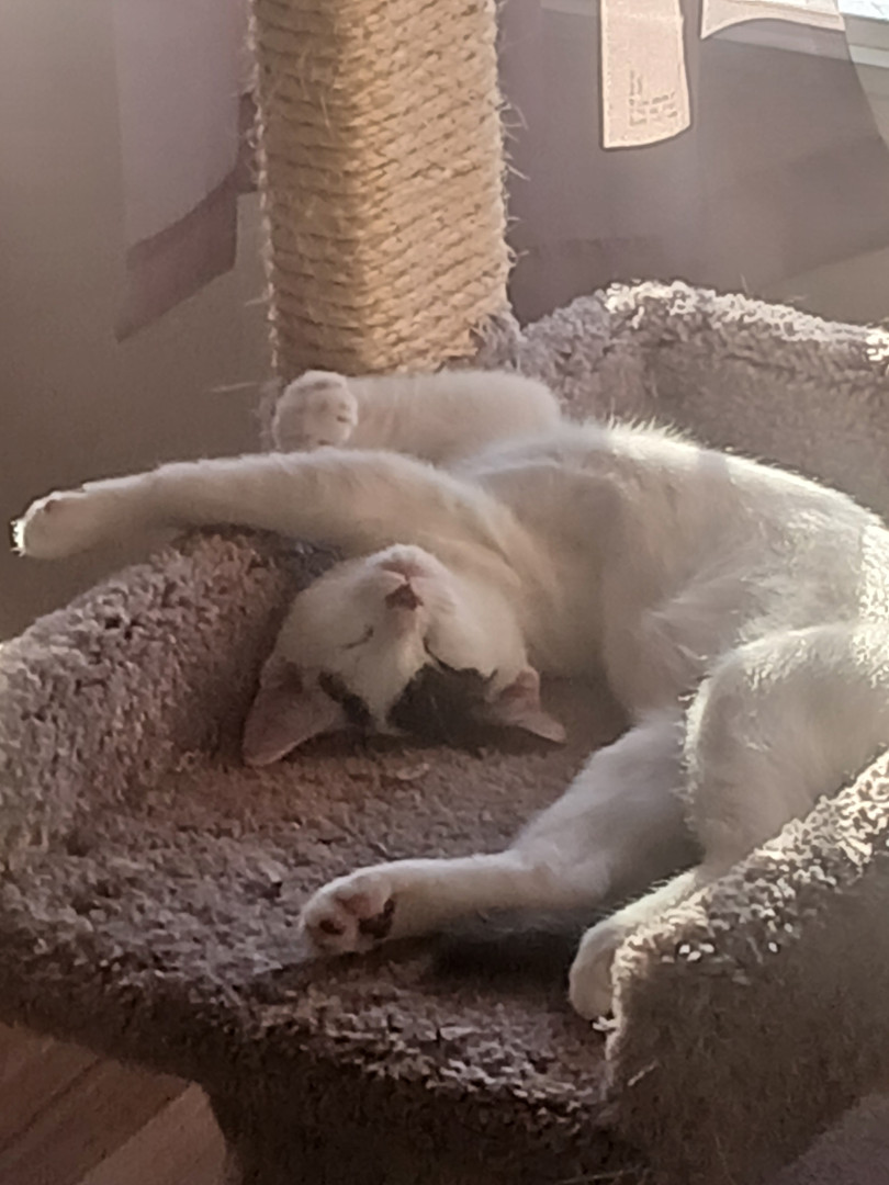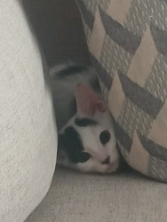 Fearless!! Tink is not afraid to explore the unknown. Whether it's under a cabinet or behind a closed door. Tink charges in to explore with his 2 older cay siblings close by to watch over him