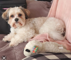 He little lambs is his favorite toy. His favorite treat is RachelnRays chicken strips.