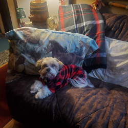 He is my best friend,cuddle bug, exercise partner, friend to my 3 cats, a loving greeter,an instagater of laughter,smiles & Joy,my heart!