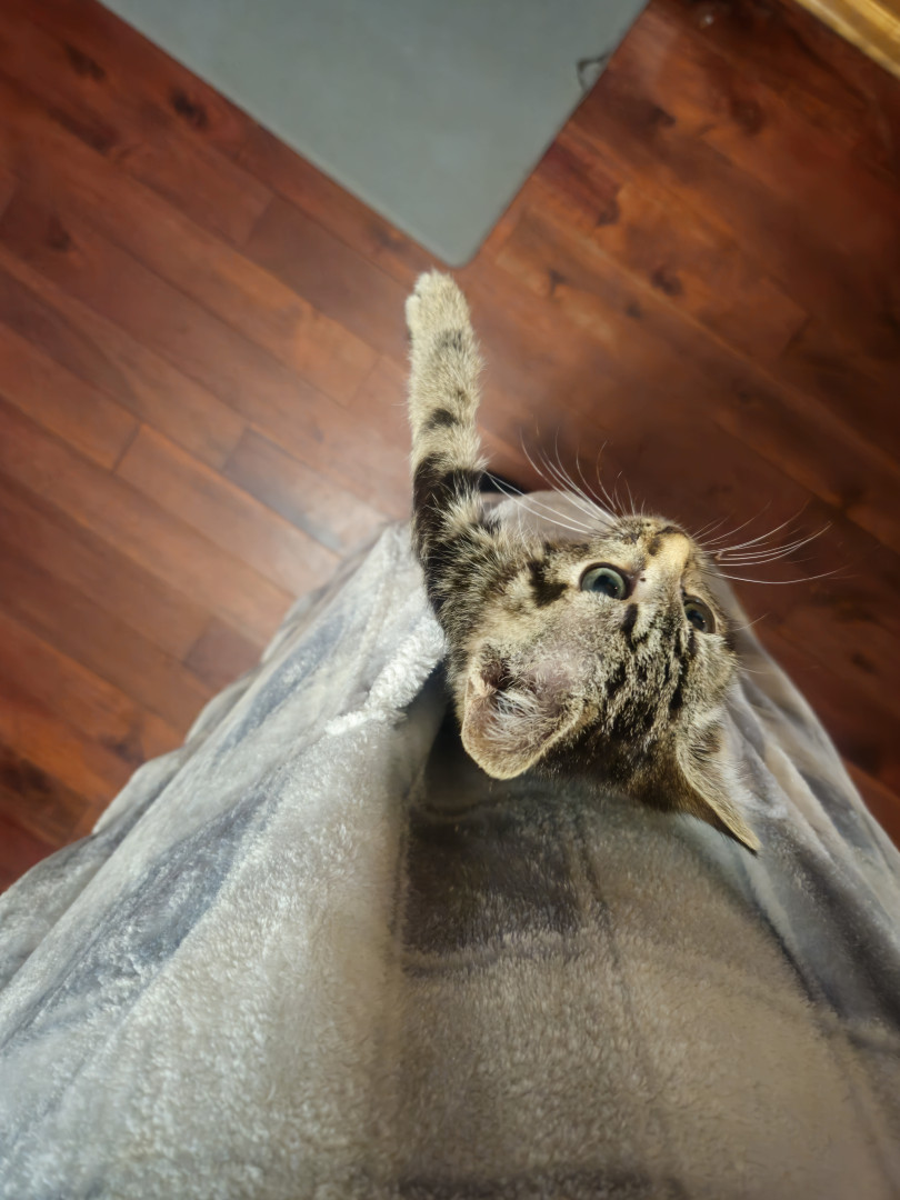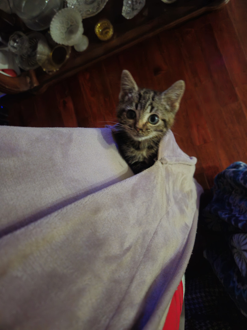 She is very unique. I take lots of cats in and rehome them. I have for 6 years. Tiny is the most loving kitten I have ever had.