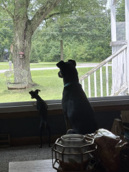 His favorite toy are toy antlers, his favorite treat is deer meat!!