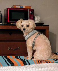 Tito is a Yorkie Pomeranian Chihuahua mix that I rescued in January 2019. He was a big ball of matted fur, but he immediately stole my heart