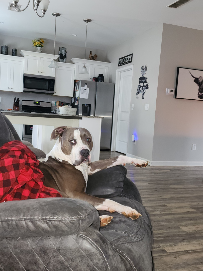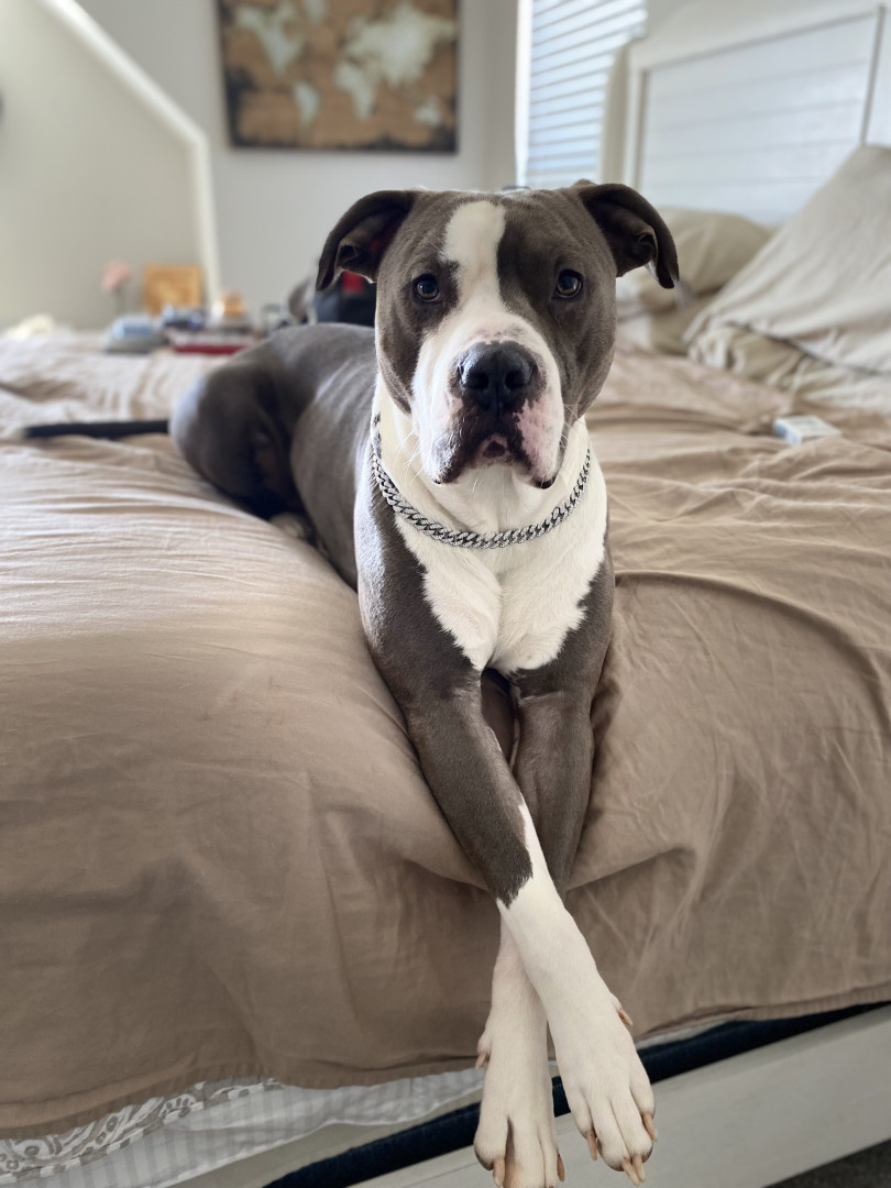 Personal space invader, bottomless belly for whats ever on my plate, cuddle bug, bed hog, happy and spoiled rotten ( as he should be).