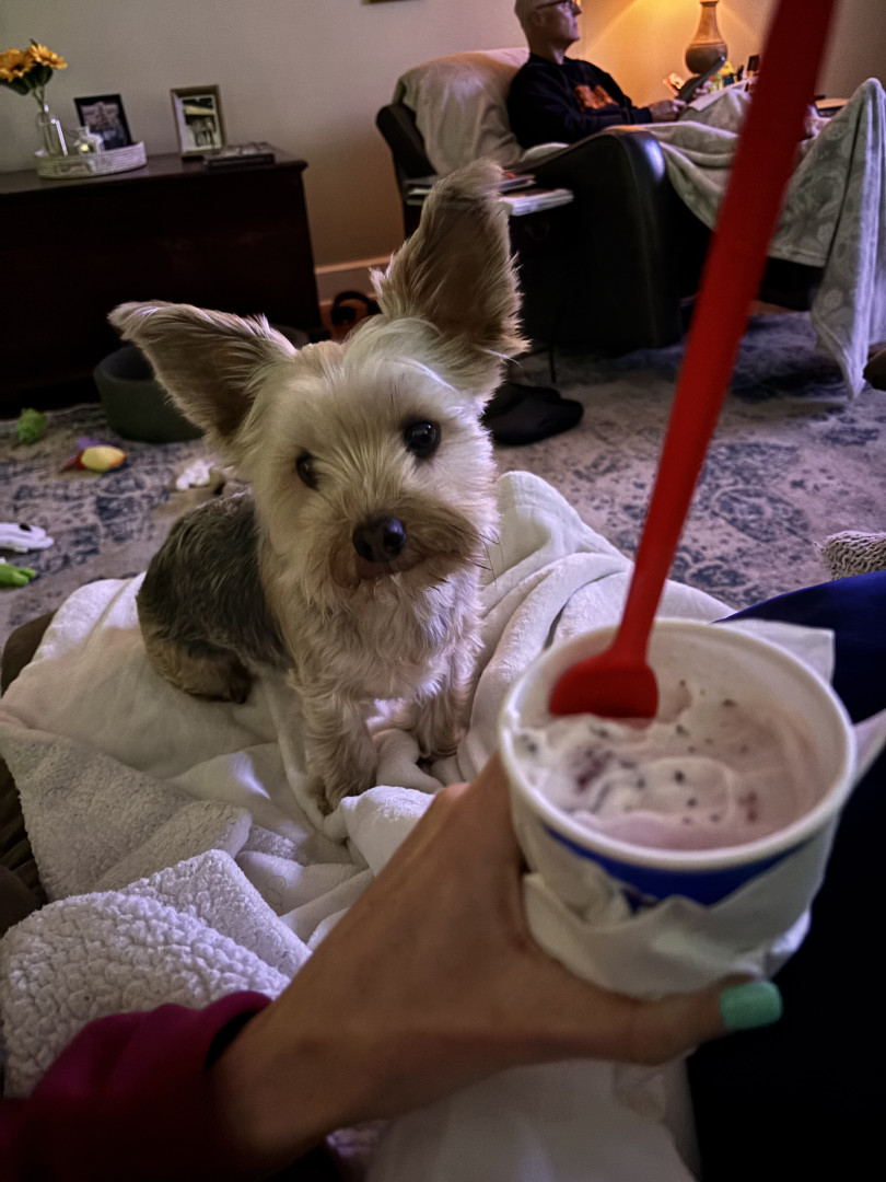 Toast is the sweetest, happiest, cuddle-loving little guy. He loves his mom, walks, lap time, and all things food (especially ice cream).