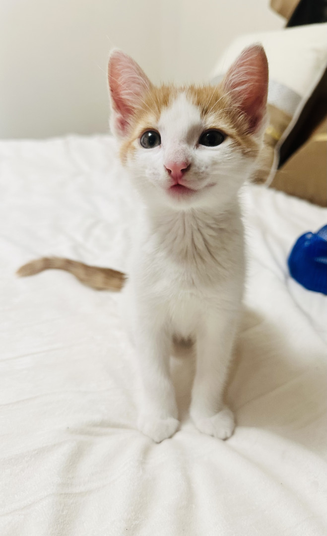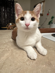 He loves to chase the laser, and his go to treat is temptation Kitten.