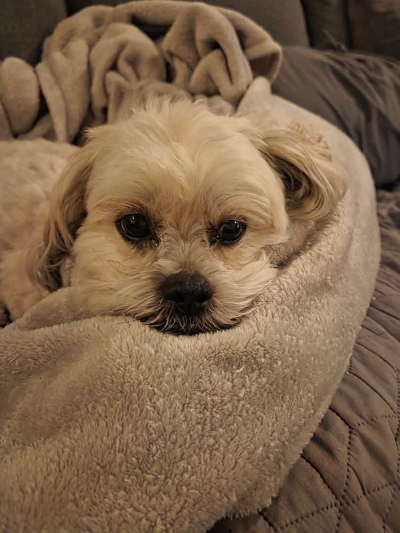Toby is sweet and loving. He enjoys cuddles and blankets.