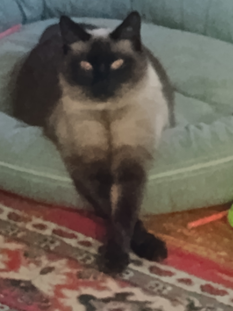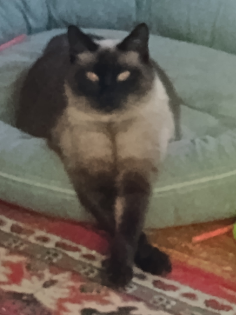 Toby loves his sister,brother and the dog. He likes to sleep in the Dog bed and grabs people when they walk by. He loves riding on my walker