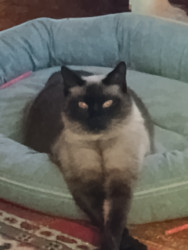 Most cats have their own personality but Toby does like to be the king of the castle so he is taking over what most dogs would do. He likes to stare out the window and watch animals and cars go by. He even talks to the birds when they eat at the bird feeder.