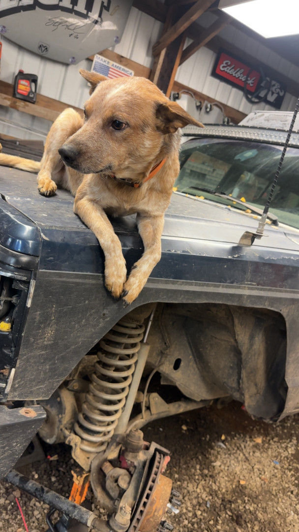 Being a rescue dog he’s came along ways. He’s great with my kids and loves to go everywhere with me