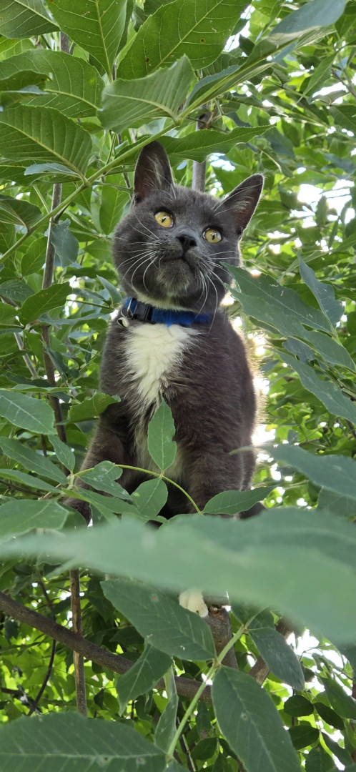He loves chasing dry leaves around and climbing trees. He likes tuna for treats