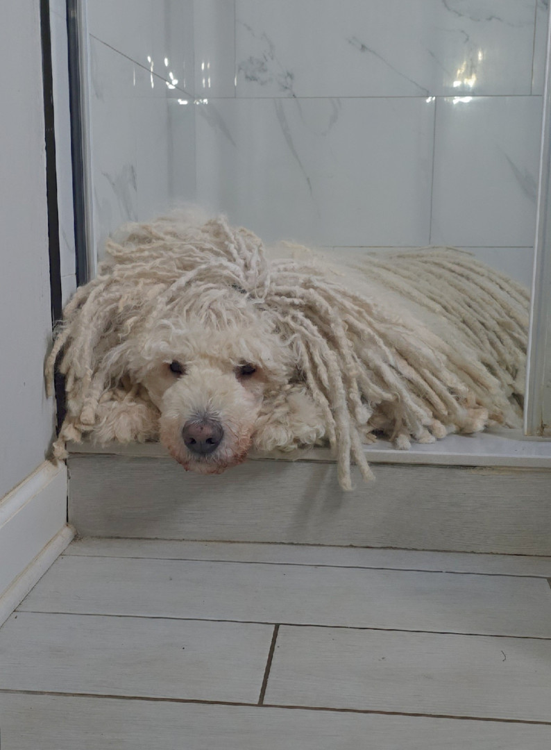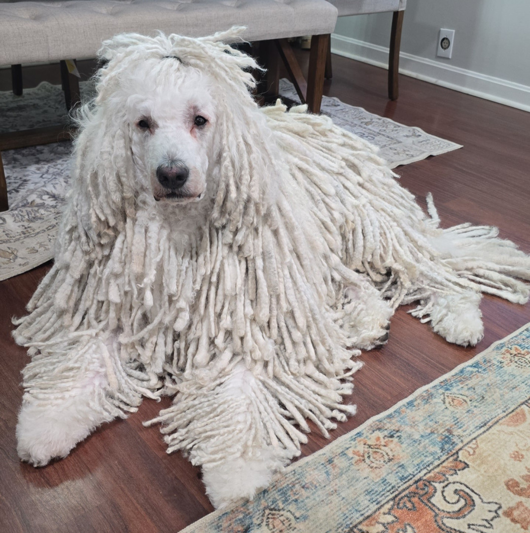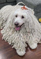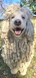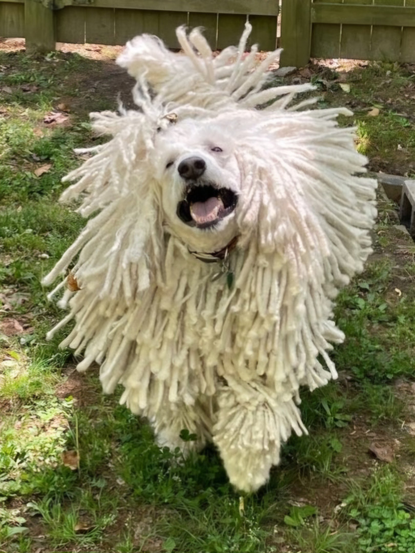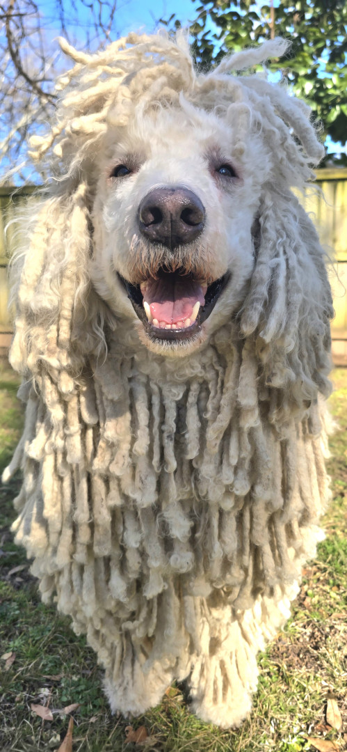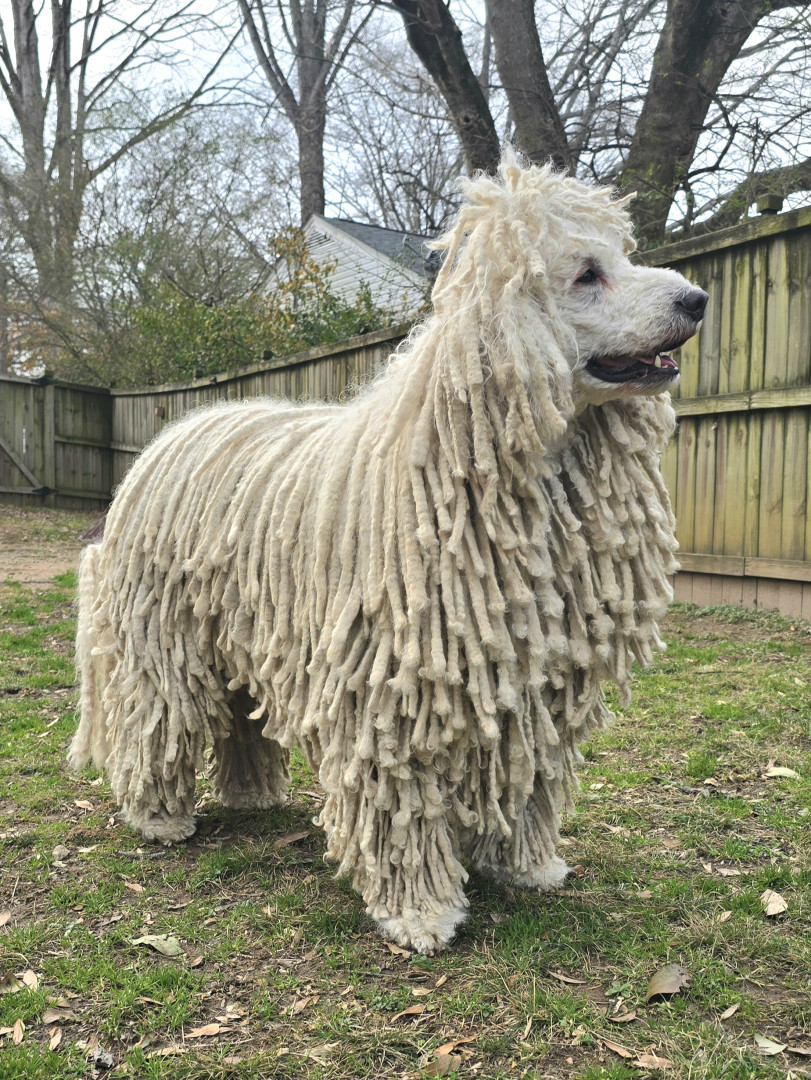 6 year old Hungarian Komondor named Toevold Foster papa to puppies and unforgettable to everyone he meets